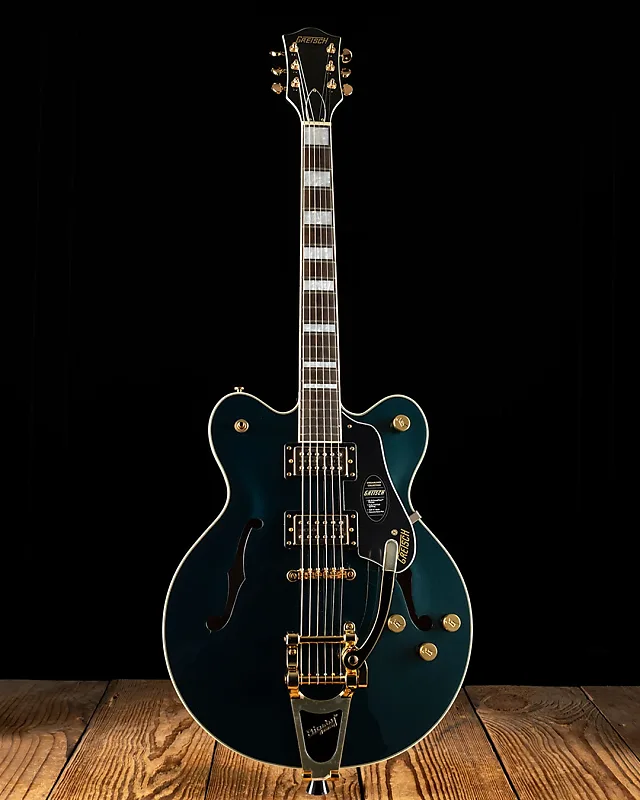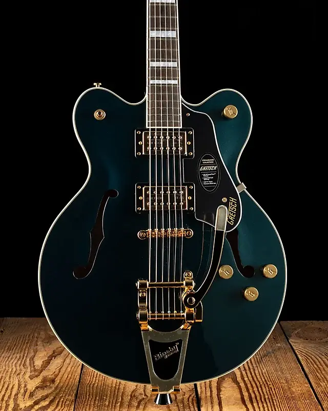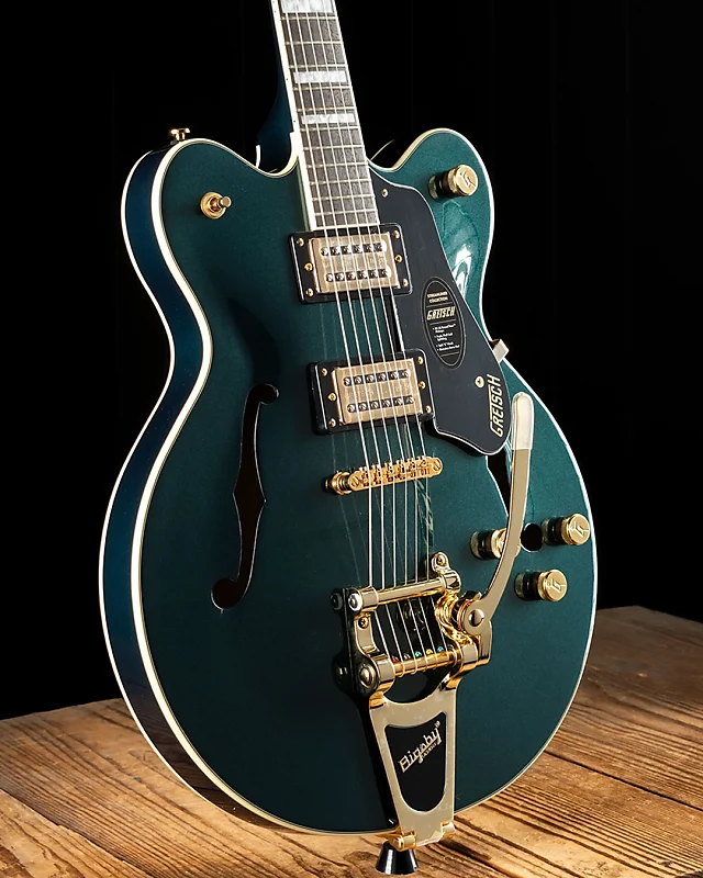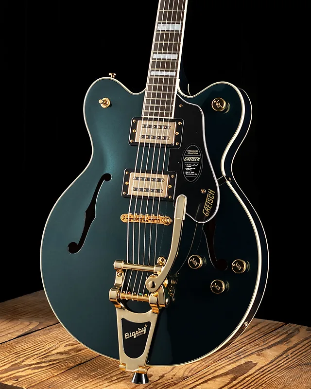 Ограниченная серия G2622TG Streamliner Center Block Double-Cut с Bigsby врывается в современную эпоху с мощным звуком и стилем. С блестящей золотой фурнитурой, металлическими ручками управления G-Arrow и перламутроидными вставками Big Block, эта ограниченная серия предназначена для гитаристов, которые требуют от инструмента большего, чем обыденность - больше производительности, больше стиля и, самое главное, больше громкости - сохраняя при этом все, что вы ожидаете от Gretsch.