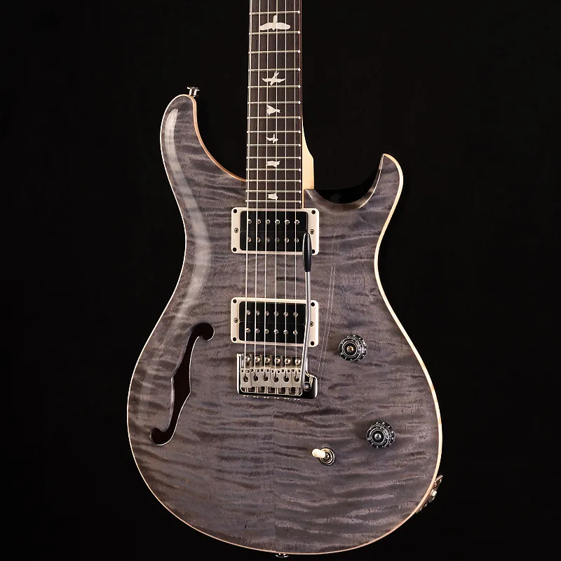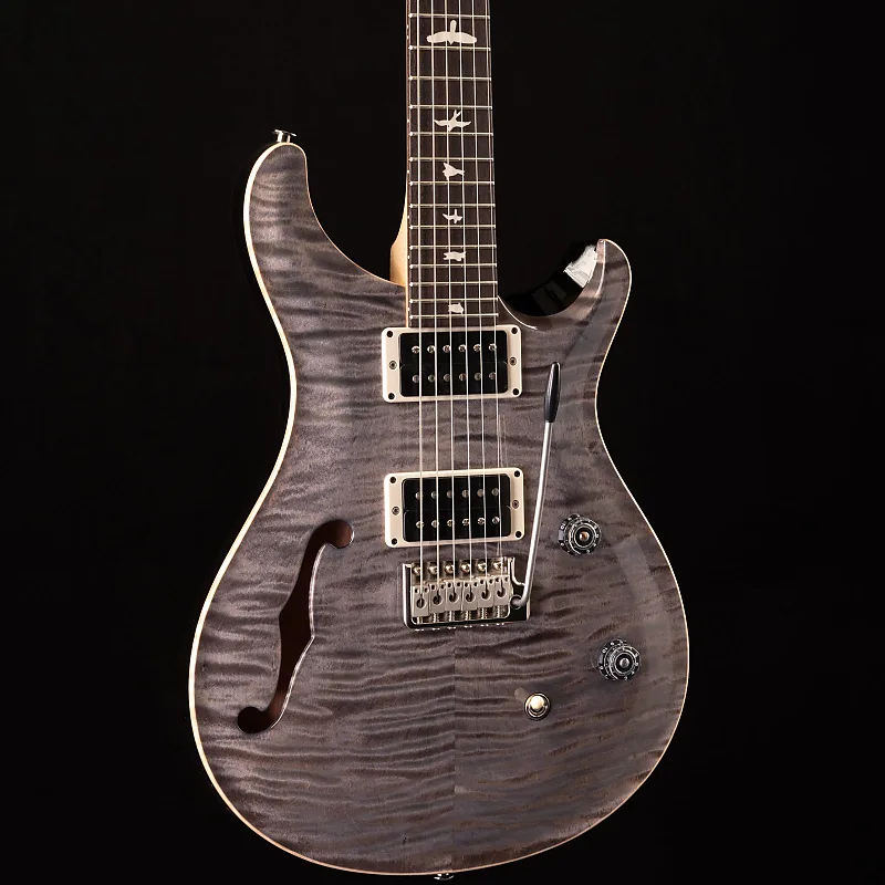 Компания Moore Guitars в Эвансвилле, штат Индиана, с гордостью представляет эту прелестную новую гитару PRS CE24 Semi Hollow в цвете Faded Gray Black. Сочетая яркость и сустейн болтового крепления с воздушной резонансностью полупустотелого корпуса, CE 24 Semi-Hollow является действительно уникальным дополнением к линейке PRS с болтовым креплением. Корпус объединяет традиционное сочетание задней дека из махагона и верхней дека из клена с болтовым кленовым грифом и накладкой из розового дерева. Гриф имеет выемку Pattern Thin и сатиновую нитроотделку для естественного, притягательного ощущения. Электроника состоит из регулятора громкости и регулятора тембра с функцией push/pull и 3-позиционного переключателя, что обеспечивает всего шесть классических звучаний звукоснимателей PRS 85/15.