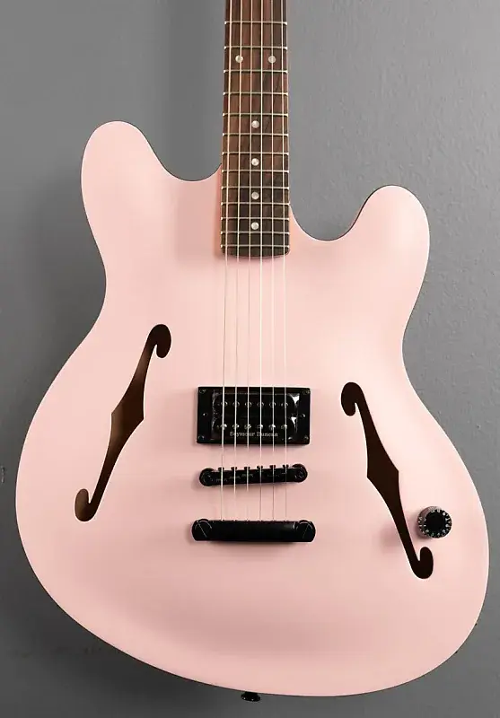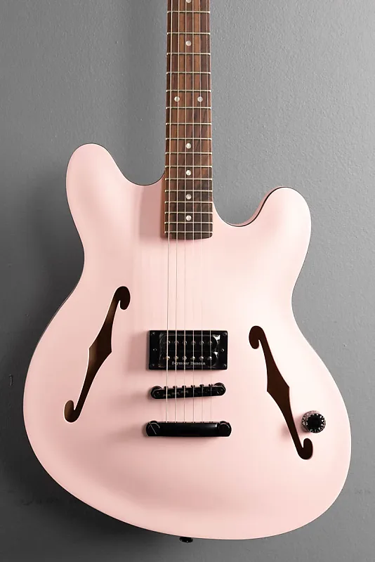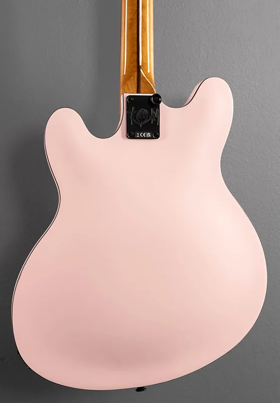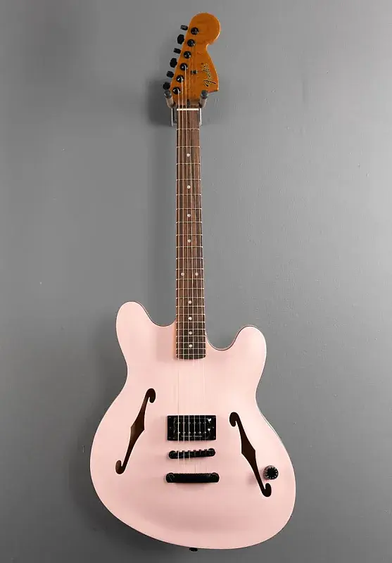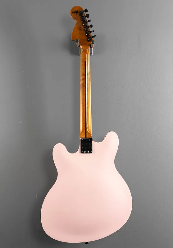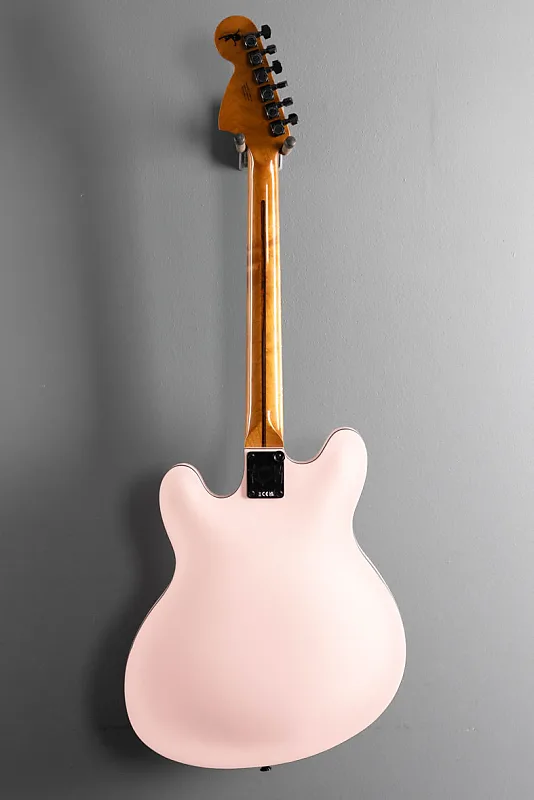 Цвет Satin Shell Pink, корпус из ламинированного клена с центральным блоком, накладка грифа из палисандра с радиусом 12" с точечными инкрустациями и средне-джамбо ладовыми порожками на современном C-образном грифе из жареного клена, длина мензуры 25,5", ширина верхнего порожка 1,650", хамбакер Seymour Duncan Duncan Custom SH-5 у бриджа с регулировкой громкости, регулируемый 6-седельный бридж с тремоло и стоп-бар хвостовиком, колки Fender Deluxe Staggered Cast/Sealed Locking, вес 7,0 фунтов, футляр в комплект не входит.