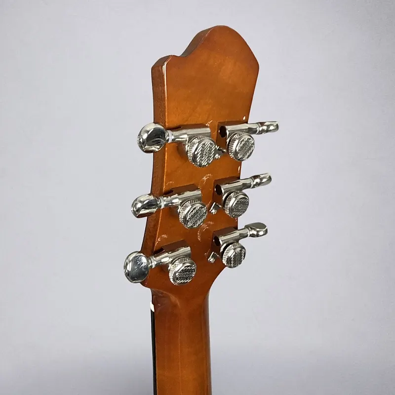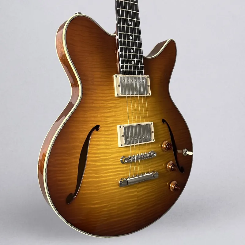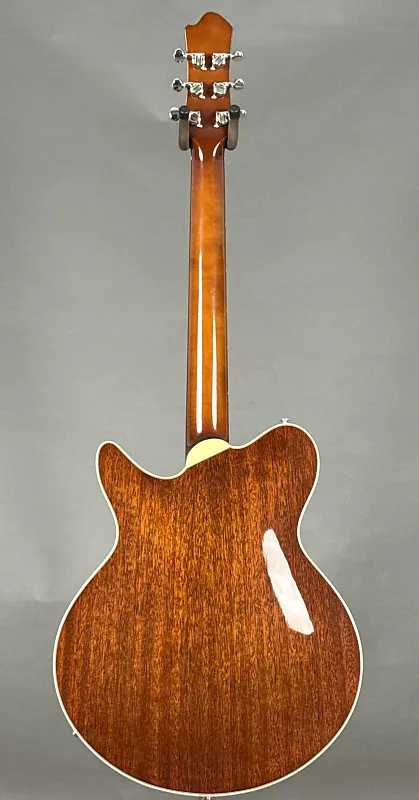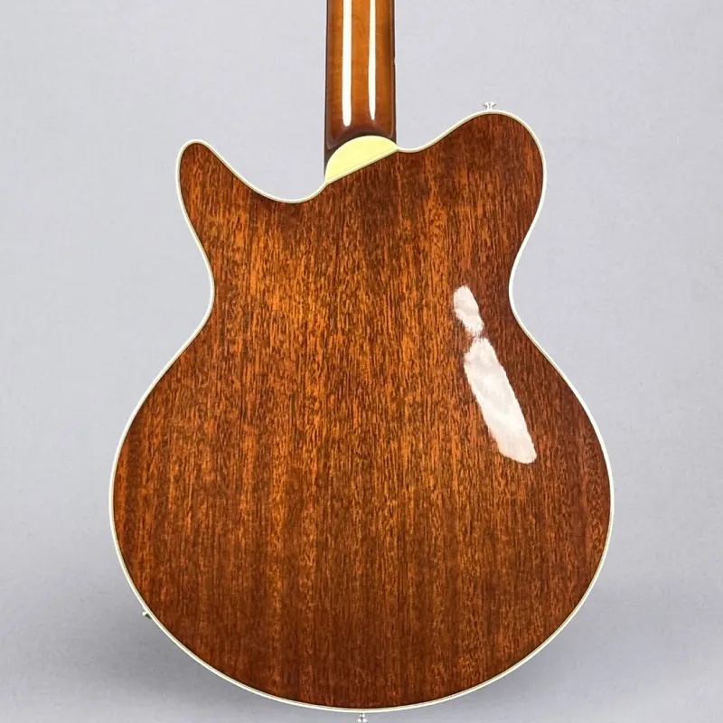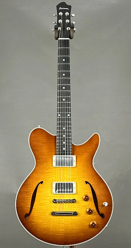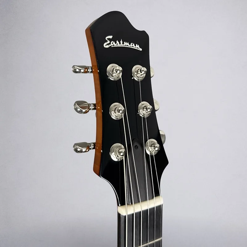 Если вы ищете полугровую гитару Thinline, которая легко сочетает стиль, звучание и игровую готовность к сцене, Eastman Romeo California - это настоящий шедевр. Разработанная мастером-лютнером Отто Д’Амброзио, эта гитара сочетает ретро-элегантность с современным классом - от изящной одноотрезной формы корпуса и окантовки из слоновой кости до потрясающей отделки Goldburst и верхней деки из клена с текстурой пламени.