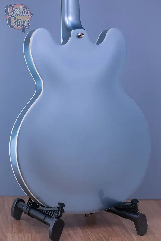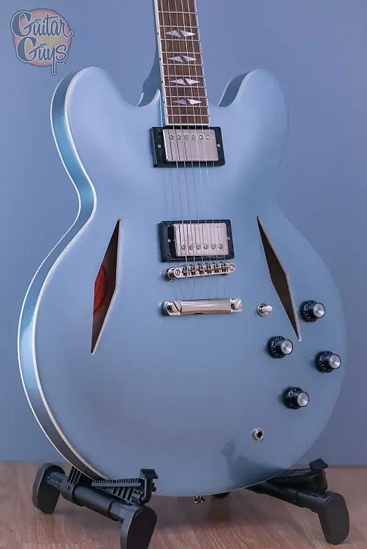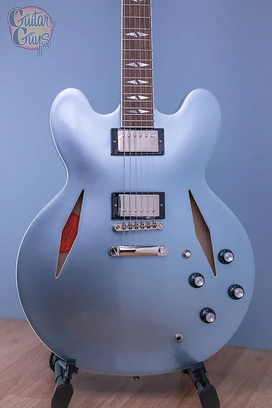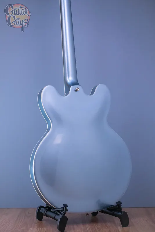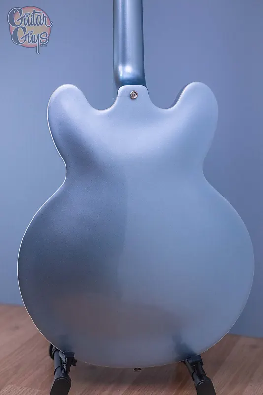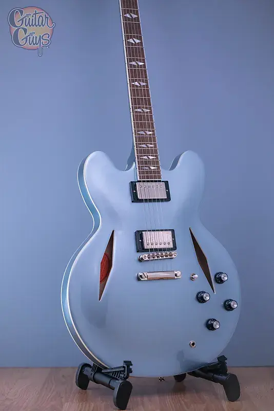 Общая информация Серия: Epiphone Inspired by Gibson Original Цвет изделия: Pelham Blue Тип футляра: Включен жесткий футляр Заводская настройка: Стандарт E (E-A-D-G-B-E) Корпус Форма корпуса: ES с алмазными звуковыми отверстиями Материал корпуса: Многослойный клен Материал верхней деки: Многослойный клен Окантовка корпуса: Белая Гриф Материал грифа: Массивная махагония Оттенок/цвет грифа: Pelham Blue Форма грифа: Эллиптическая C Материал грифовой доски: Индийский Лавр Шпон головки грифа: Черный Материал верхнего порожка: Graph Tech Ширина верхнего порожка: 1,6875" (43 мм) Длина мензуры: 628,65 мм Количество ладов: 22 лада Соединение грифа с корпусом: Set Neck (вставной гриф) Инкрустация грифа: Перламутровые разделенные ромбы Форма инкрустации: Ромбы Инкрустация боковых меток: Точки Обвязка грифа: Белая Электроника Звукосниматель у бриджа: Gibson USA Burstbucker 3 Звукосниматель у грифа: Gibson USA Burstbucker 2 Регуляторы и переключатели: 3-позиционный Switchcraft Особенности электроники: 2 регулятора громкости, 2 регулятора тембра, потенциометры CTS, конденсаторы Mallory Фурнитура Цвет фурнитуры: Никель Мост: LockTone Tune-O-Matic Хвостовик: LocTone Stop Bar Колки: Grover Mini Rotomatic Седло: Металл Ручки: Черные с серебряными вставками Кнопка переключателя: Белая