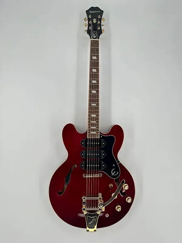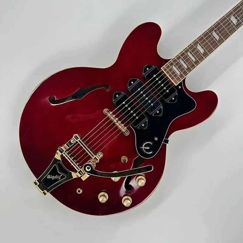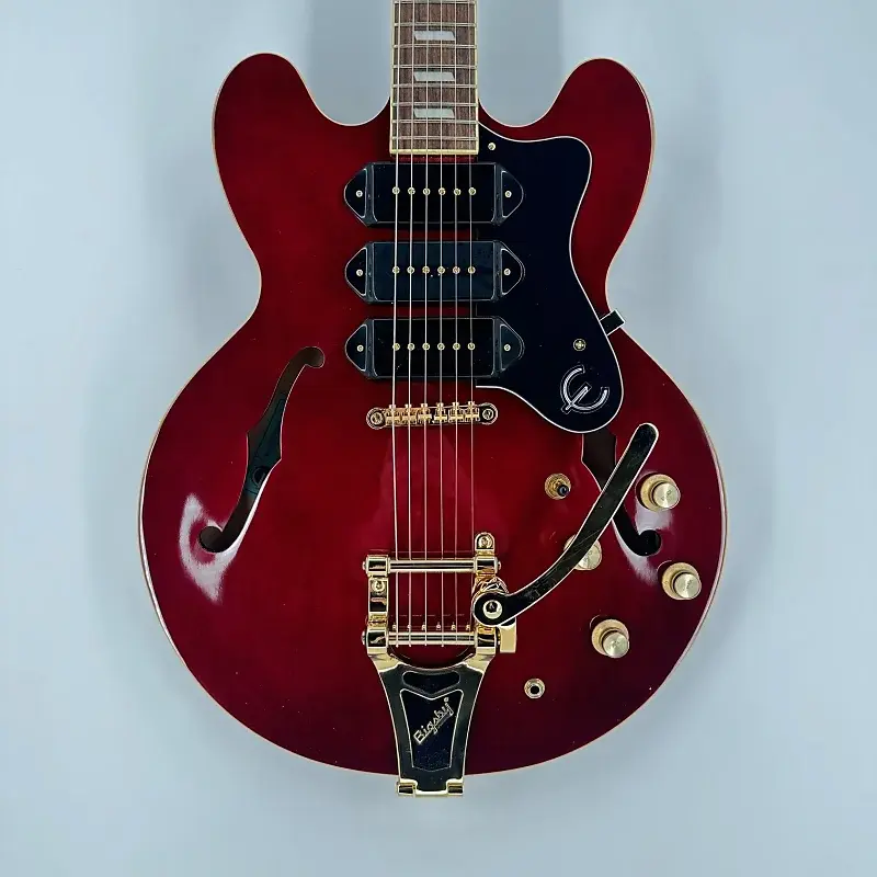 Слояный клен, сердцевина из клена, гриф из красного дерева, профиль C, гриф из пау-ферро, 3 звукоснимателя Epiphone P-90.