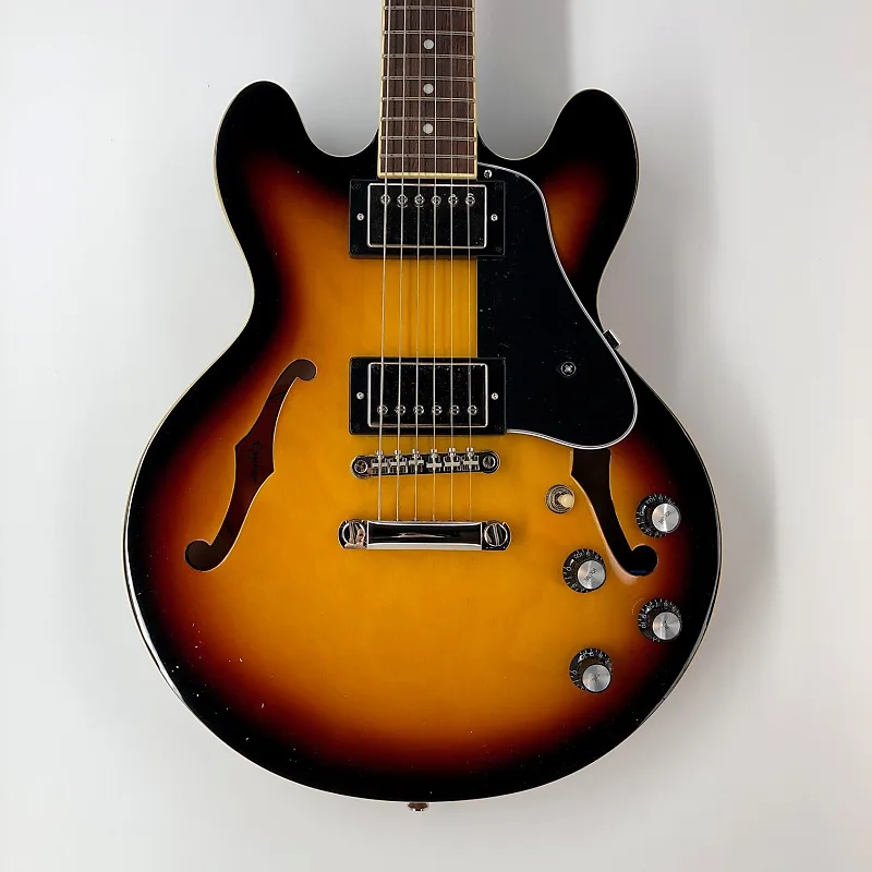 Слоистый клен, центральный блок из клена, гриф из красного дерева, профиль C, ладовая доска из индийского лаурела, звукосниматели Epiphone Alnico Classic Pro.