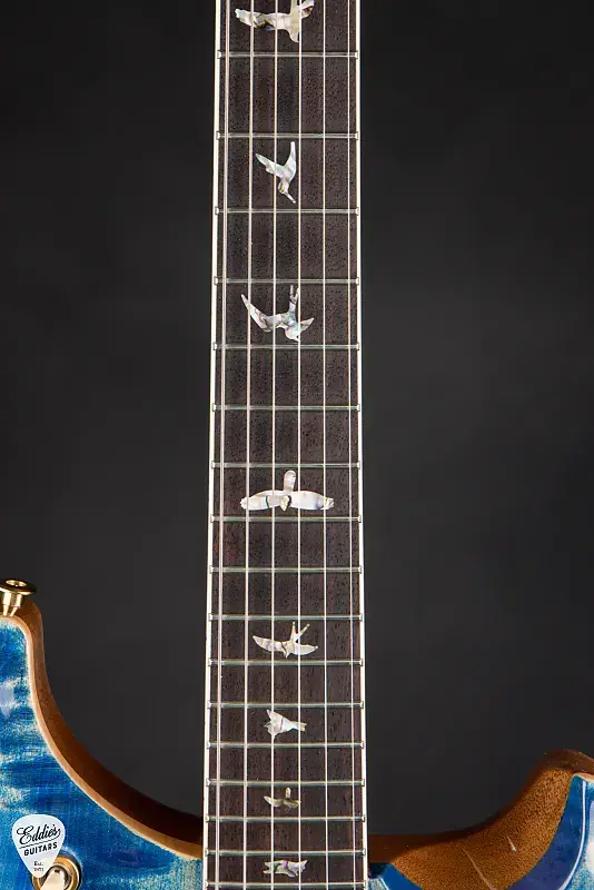 Гриф изготовлен из цельного куска красного дерева и имеет профиль PRS Pattern Vintage, удобную, немного более толстую резьбу, которая хорошо заполняет руку, что особенно ценится игроками, предпочитающими более традиционный, солидный гриф. С длиной мензуры 24,594 дюйма, 22 ладами и накладкой на гриф из палисандра, украшенным окантовкой из искусственной кости и культовыми вставками Bird от PRS, эта гитара обеспечивает знакомый, но изысканный опыт игры. Радиус накладки грифа 10 дюймов обеспечивает идеальный баланс между комфортом аккордов и точностью лидирования, в то время как костяная гайка и неблокирующиеся тюнеры Phase III с кнопками крыла обеспечивают превосходную стабильность настройки и классическую эстетику.