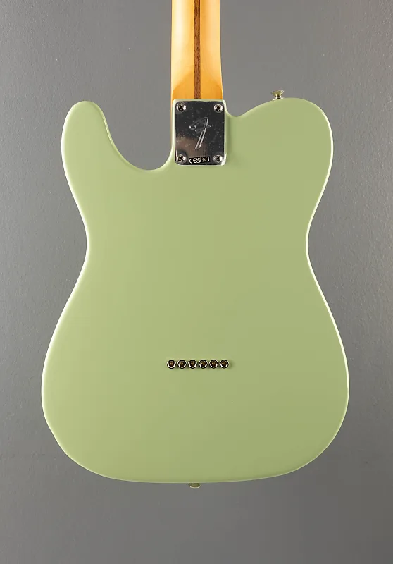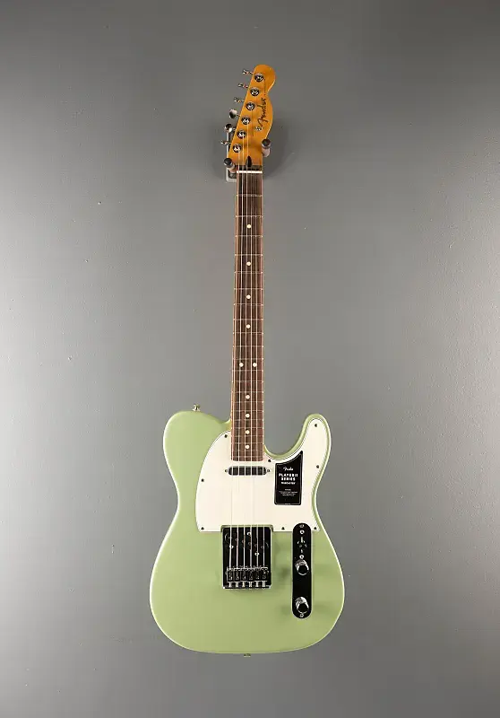 Цвет Birch Green, корпус из ольхи, гриф из клена формы Modern C с радиусом 9,5" и накладкой из палисандра с точечными инкрустациями, лады Medium Jumbo, длина мензуры 25,5", ширина порожка 1,650", звукосниматели Player Series Alnico 5 Tele Single-Coil на бридже и грифе, 3-позиционный переключатель с регуляторами громкости и тона, 6-седельный телебридж String-Through-Body с блоковыми стальными седлами, тюнеры Fender ClassicGear, вес 7,2 фунта, чехол в комплект не входит.