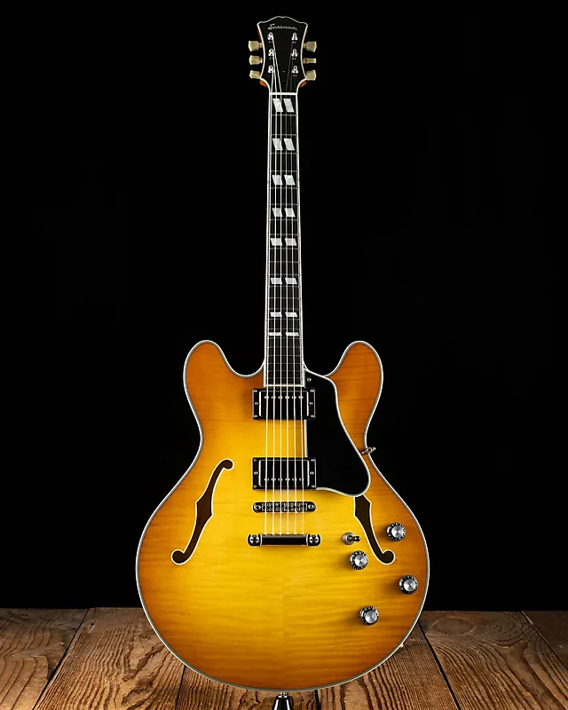 Гладкая тонкая линия с большим количеством тона и стиля! Верх, задняя и боковые стороны из кленового ламината со звуком большого корпуса для джаза, блюза и рока. Двойные звукосниматели Seymour Duncan Phat Cat Humbucker.