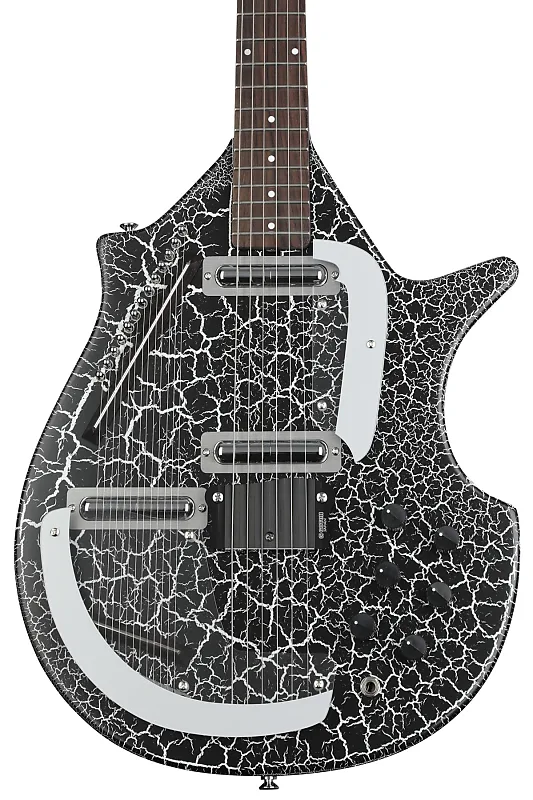 6-струнный электрический ситар с дрон-струнами, 3 сингл-когтевые звукосниматели Lipstick и мост Gotoh для ситара - черный кракле.