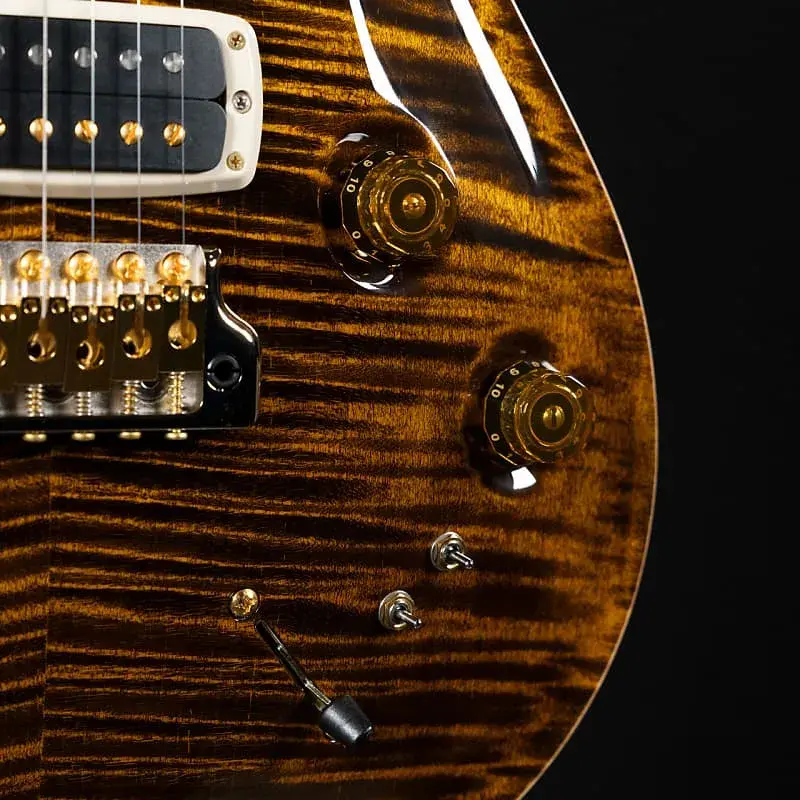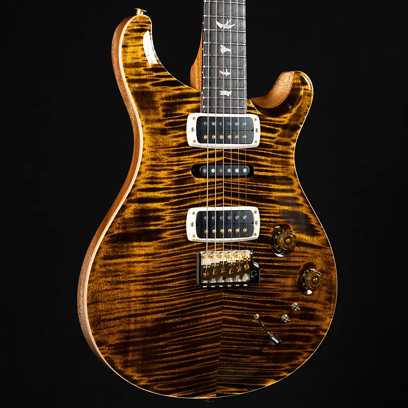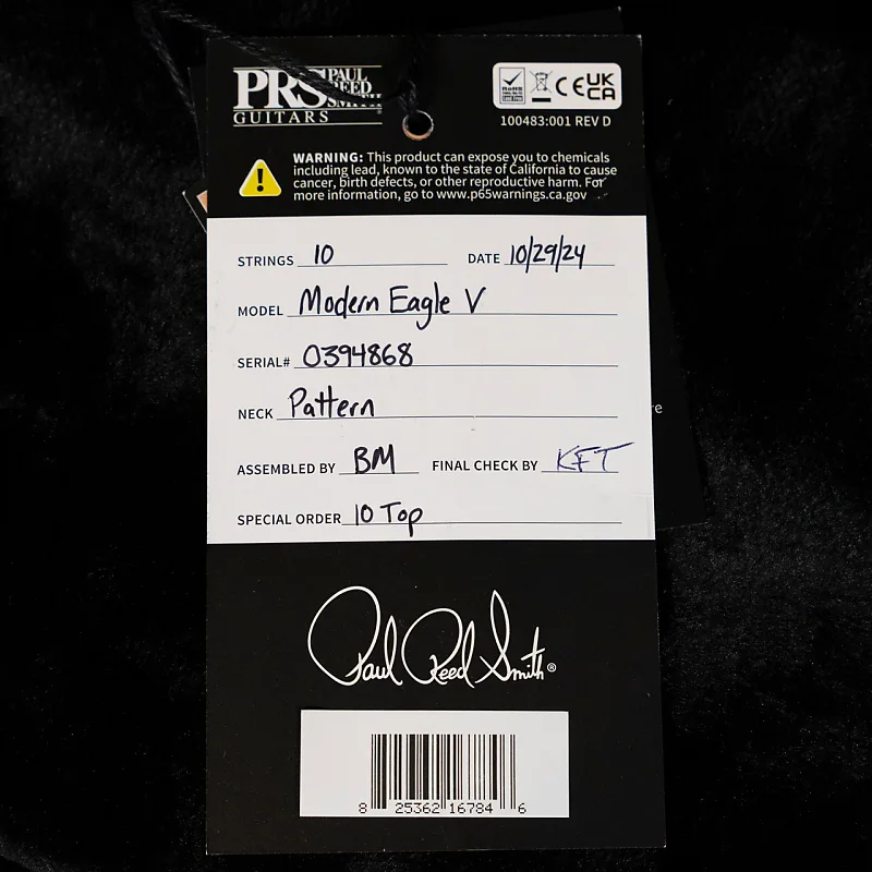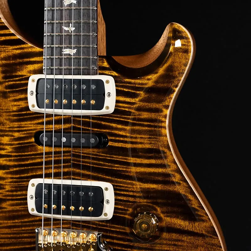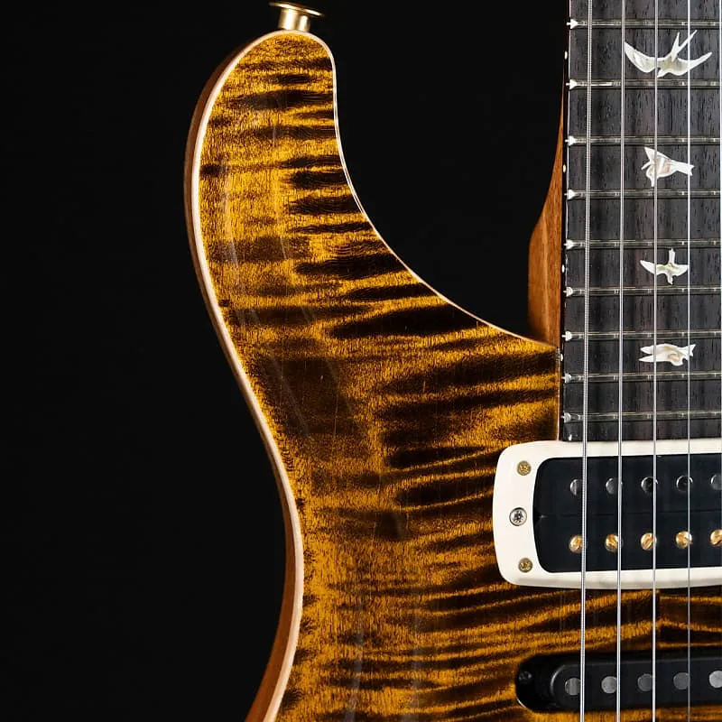 Наконец-то у нас есть еще одна прекрасная гитара PRS Modern Eagle V в комплектации Yellow Tiger с декой 10-Top. Modern Eagle действительно является произведением искусства: корпус из красного дерева и потрясающая резная кленовая дека с рисунком, гриф из красного дерева с вырезом «Pattern» и великолепная темная грифовая накладка из розового дерева. Modern Eagle наполнена инновационными функциями, от колковых механиков Phase III до фирменного тремоло PRS Patented Gen III. Изначально эта модель предлагалась только в рамках Private Stock, но теперь вы можете приобрести эту редкую гитару на основном уровне! Дека у этой гитары выглядит невероятно объемной и имеет аккуратный, ровный рисунок. Не говоря уже о диапазоне тонов, который она производит - действительно нет ничего, чего бы она не могла сыграть. Мы рады видеть эту гитару в нашем магазине и абсолютно уверены, что она станет огромным источником вдохновения в любых руках. Поставляется в жестком кейсе PRS с сертификатами.