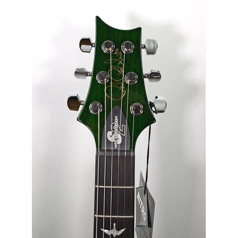De 10th Anniversary S2 Custom 24 bouwt voort op de originele specificaties van de S2 Custom 24, met behoud van een esdoornblad, mahoniehouten achterkant, 25" mensuur, 24-fret Pattern Thin-hals, PRS gepatenteerde gegoten tremolo en PRS-locking-tuners met lage massa. Speciale voorzieningen zijn onder meer: een hals van Кубинский красный палисандр, инкрустация из перламутра и - что наиболее заметно - изготовленные в США звукосниматели и электроника PRS 85/15. Звукосниматели PRS 85/15 объединяют винтажный и современный дизайн звукоснимателей для исключительной ясности и широкого диапазона высоких и низких частот. PRS 85/15 были усовершенствованы с использованием процесса PRS TCI, обеспечивая сбалансированную, полную спектральную прозрачность. Они идеально подходят для современных гитаристов, использующих педалборд, и обладают достаточным характером, чтобы раскрыться при прямом подключении к усилителю. Впервые в серии S2 эти звукосниматели также сочетаются с регуляторами громкости, тона и 5-позиционным переключателем (в отличие от 3-позиционного переключателя с функцией push/pull для регулировки тона).