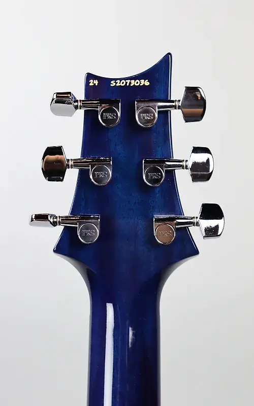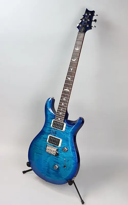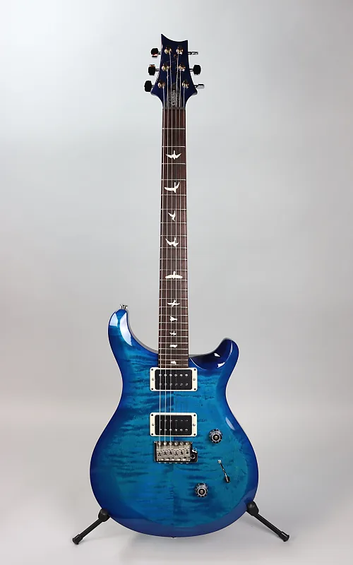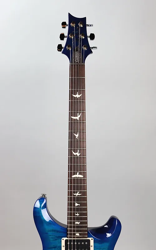 Технические характеристики: Крышка из клена; корпус из красного дерева; гриф из красного дерева (тонкий профиль); грифовая накладка из розового дерева, 24 лада; мензура 25"; ширина грифа 1-11/16"; никелированная фурнитура; инкрустация в виде птиц; тремоло мост PRS с запатентованной системой; PRS низкомассовые блокирующие колки. Глянцевое покрытие Nitro Lake Blue. В комплекте чехол PRS.
