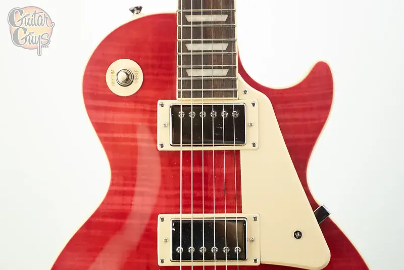 Общее Серия: Epiphone Original Цвет продукта: Фуксия Чехол: Gig Bag в комплекте Заводская настройка: E Standard (E-A-D-G-B-E) Корпус Форма корпуса: Les Paul Материал корпуса: Махагон Отделка корпуса: Глянцевая Материал верха: клен с AAA Flame Maple Veneer Крепление корпуса: однослойный гриф Материал грифа: красное дерево Отделка грифа: глянцевая форма грифа: SlimTaper '60s C Материал грифа: лавровый орех Материал: Graph Tech Ширина порожка: 1,69 дюйма (43 мм) Радиус грифа: 12 дюймов (304,8 мм) Длина мензуры: 24,75 дюйма (628,65 мм) Количество ладов: 22 лада Соединение грифа: Комплект Гриф Инкрустация: Жемчужные трапеции Форма инкрустации: трапеции Боковой маркер Инкрустация: точки Инкрустация головки грифа / Наклейка: Логотип Epiphone с Les Paul Signature Крепление грифа: Однослойное Аппаратура Цвет аппаратуры: Никель Бридж (мост): LockTone Tune-O-Matic Хвостовой шип: LockTone Stop Bar Тюнинговые механизмы: Grover Rotomatic с Kidney Buttons Седло: Металл Звукозащитная пластина (Pickguard): Кремовый Накладка на гриф (Truss Rod Cover): 2-слойная черная, форма «Колокол» Регуляторы: Золотые Top Hats с серебряными вставками Кнопка переключателя: Кремовая