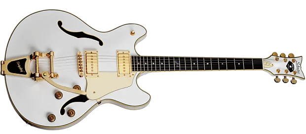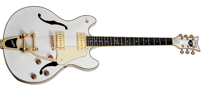 Эта гитара с классическим дизайном, выполненная с корпусом из клена с полым резонатором, соединенной грифовой частью и накладкой из черного дерева, является данью уважения музыкальной легенде Робину Зандеру из группы Cheap Trick. Эта гитара - не только красивый инструмент; с звукоснимателями Seymour Duncan, бриджем Bigsby, колками Grover и четырьмя регуляторами на корпусе плюс переключателем тембра, вы получаете все инструменты, чтобы играть как Зандер, сохраняя при этом универсальность полого корпуса, ценимую многими гитаристами.