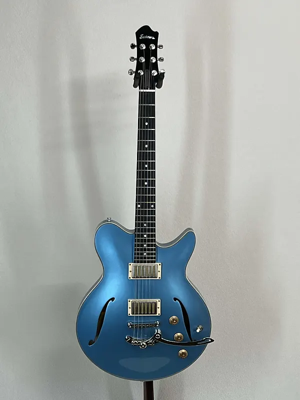 Eastman Romeo LA в цвете Celestine Blue - это великолепная гитара как по внешнему виду, так и по звучанию. Оснащена звукоснимателями Seymour Duncan Radiator Phat Cat P-90, мостом, тремоло и замками для струн Göldo. Поставляется в жестком кейсе.