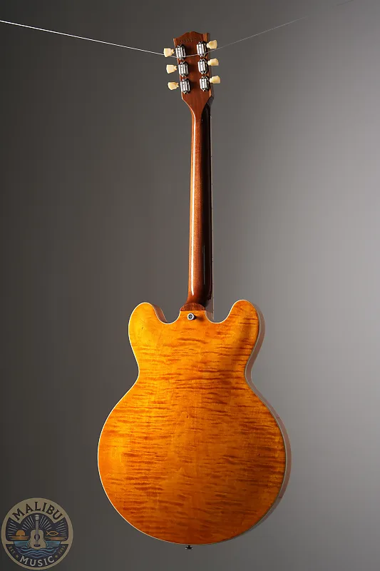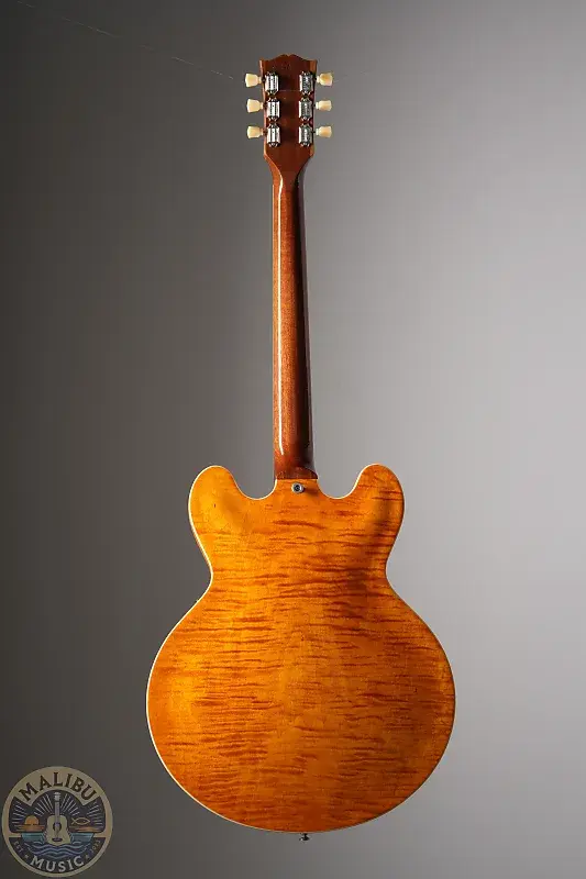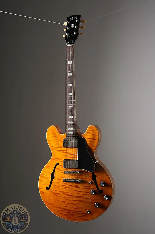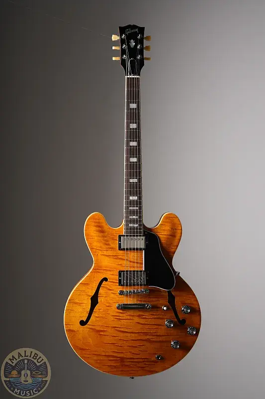 Gibson ES-335 Figured, с его потрясающими фигурными кленовыми верхом и спинкой AAA, - это место, где классическая производительность ES-335 сочетается с захватывающей дух красотой. Полуполый корпус, изготовленный из 3-слойного фигурного клена/тополя/клена AAA и цельного кленового центрального блока, обеспечивает исключительную устойчивость к обратной связи и сустейшн. Распорка корпуса из адирондакской ели, распиленная на четверть, повышает тонус и силу.