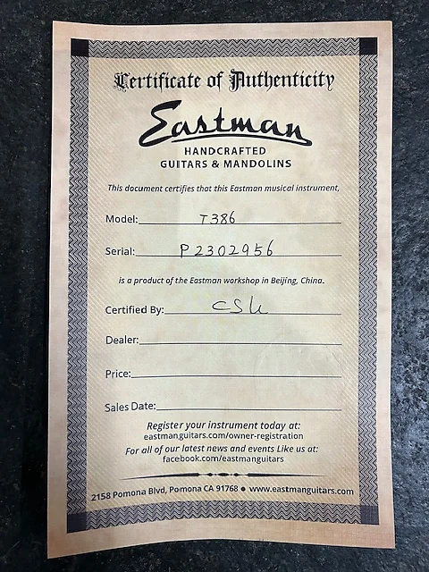 Eastman T386, совершенно новый (24 октября), в коробке, настроен перед отправкой.