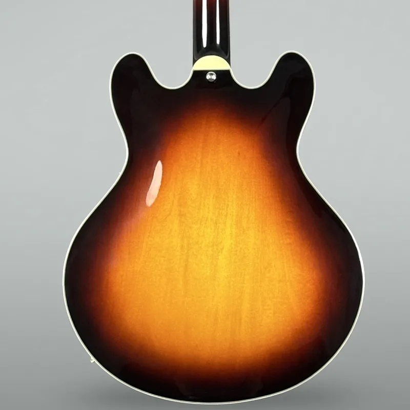 Косметически эта гитара легко конкурирует с самые изысканные «точки», с великолепным солнечным оттенком отделки и многослойной окантовкой на верхней деке, задней части, грифе, накладке и F-отверстиях. Это одна из лучших предложений, которые мы видели среди полупустых тонких гитар. Жесткий футляр входит в комплект.