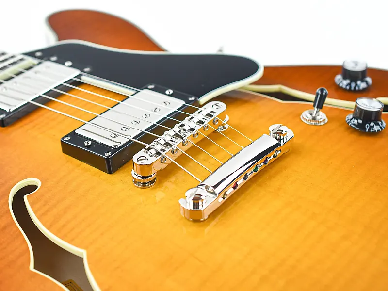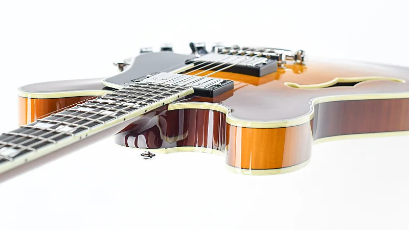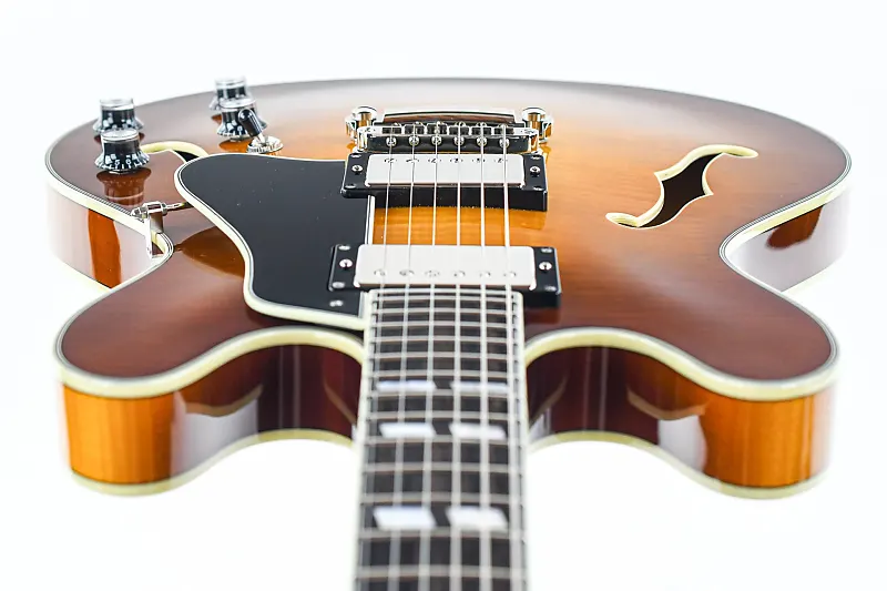 Эта полуакустическая гитара оснащена корпусом из высококачественного ламинированного клена. Она универсальна, отзывчива, обладает насыщенным звуком и приличной мощностью. Отличительный звук хамбакеров обеспечивают звукосниматели Seymour Duncan Jazz и 59. Центральная дека предотвращает обратную связь и делает эту полуакустическую гитару немного ближе по звучанию к гитаре с цельным корпусом.