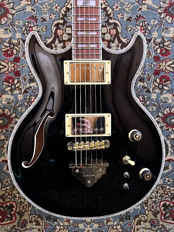 Ibanez AR520H BlackВес: 7,0 фунтов.Ibanez AR520 создан для гитаристов, которым нравится внешний вид твердотелой гитары Ibanez, но которые хотят добавить щепотку характера полутвердого корпуса в свой звук. Эта гитара имеет корпус из камерного клена/окуме с резным верхом из клена. Два хамбакера Super 58 Custom с электроникой Tri-sound обеспечивают Ibanez AR520 несомненную тональную стойкость; конструкция полутвердого корпуса добавляет воздушное качество, создавая звук, который музыканты здесь, в Sweetwater, просто обожают. Ibanez AR520 также оснащена мостом Gibraltar Performer и хвостовиком Quik Change Ultra, обеспечивая долгую сустейн и стабильность настройки. Кроме того, трехсекционная кленовая шея и почти незаметный каблук шеи обеспечивают непревзойденный комфорт при игре.