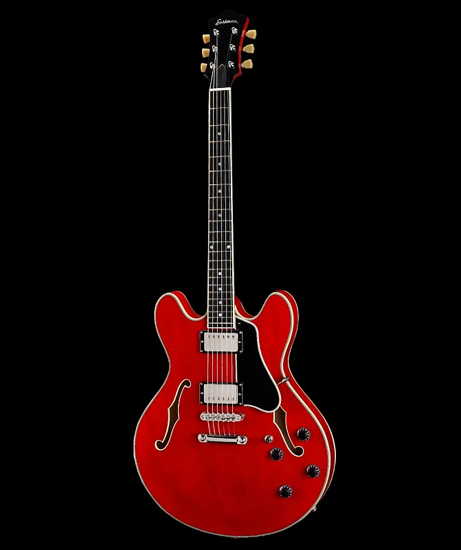 Eastman T386-RD - это тонкая полузакрытая электрогитара, известная своей универсальностью в джазе, блюзе и роке, с красным глянцевым корпусом из ламинированного кленa, кленовой шейкой с накладкой из эбена и двумя хамбакерами Kent Armstrong. Она сочетает в себе классическую эстетику с F-дырками и окантовкой, удобную, стойкую к фидбеку конструкцию с центральным брусом и традиционный профиль шейки «C» для комфортной игры.