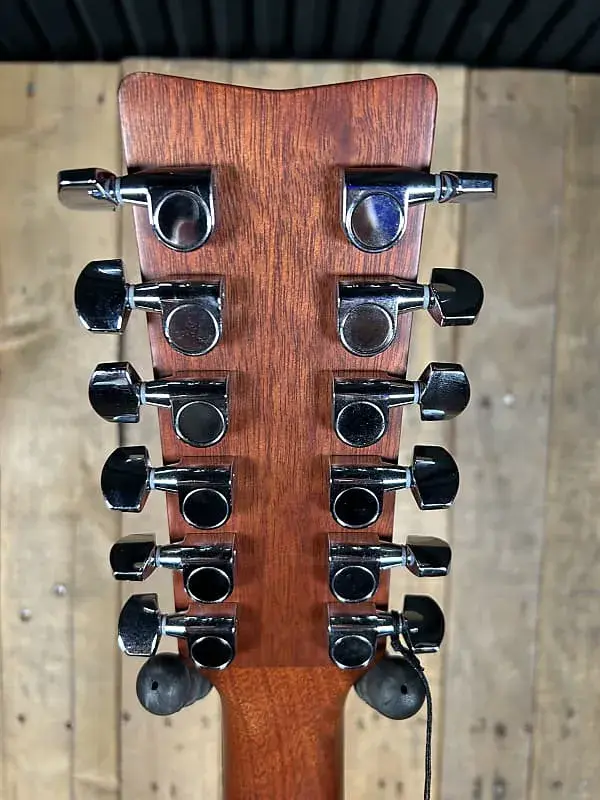 Яркий и переливчатый с богатым, насыщенным резонансом. Верхняя дека из ели придает четкость и определенность, тогда как махагон добавляет тепла. Выемчатые распорки усиливают басовые ноты, не теряя характерного блеска 12 струн. Отзывы неизменно хвалят громкость, сустейн и стабильность настройки - качества, которые нравятся как новичкам, так и опытным музыкантам.