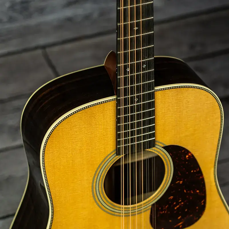 "Martin HD12-28 - надежный выбор для музыкантов, ищущих насыщенные, многослойные звуки, которые может дать только 12-струнная гитара. Любима поколениями исполнителей за способность добавлять глубину и яркие тональные слои, ее корпус dreadnought создает смелый, проективный звук с мощными басами, чистыми высокими и богатым обертоном, идеально сочетающийся с звонкими и текстурными дополнительными октавными струнами. Изготовленная вручную с массивной верхней декой из ели и спинкой и боками из массивного индийского палисандра, HD12-28 предлагает резонансный звук, сбалансированный для любой игры."