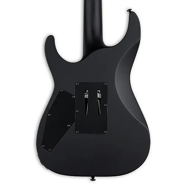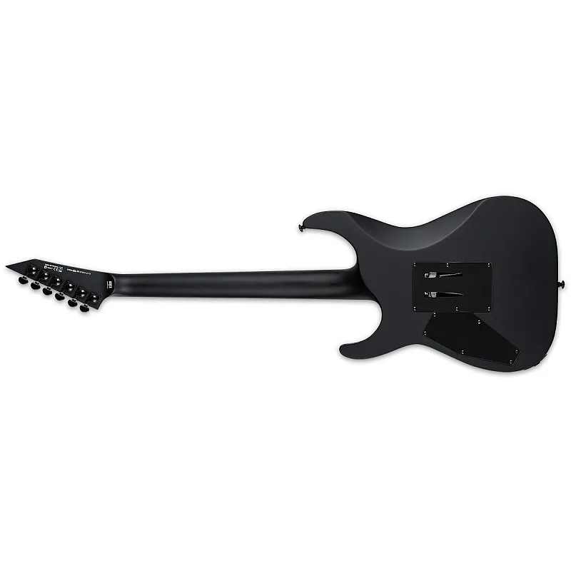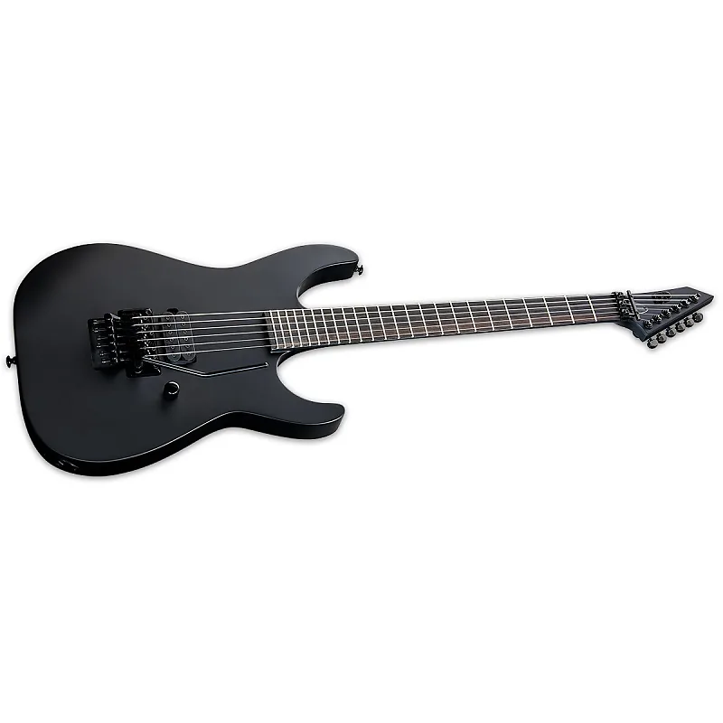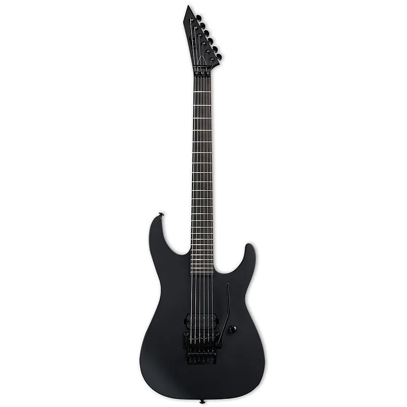 Серия LTD Black Metal представляет собой гитары, сопоставимые по качеству сборки с нашими инструментами серии LTD Deluxe «1000 Series», но с темной и угрожающей эстетикой: полностью черное покрытие, компоненты и фурнитура, один высококачественный звукосниматель, накладки грифа из макассарского эбена без инкрустаций и светящиеся боковые маркеры, а также новый черный металлический логотип LTD на голове грифа. M-Black Metal основана на конструкции ESP M-I FR. Это конструкция neck-thru-body с мензурой 25,5”, и включает в себя мост Floyd Rose 1000. M-Black Metal также оснащена прямым креплением звукоснимателя Seymour Duncan «Blackened» Black Winter, управляемого одним регулятором громкости.