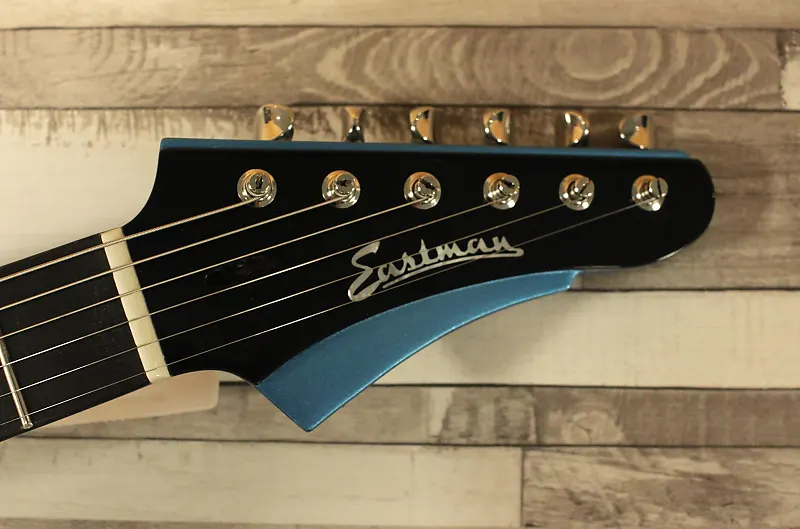 Eastman Juliet LA Celestine Blue - это совершенно новая модель с асимметричной формой корпуса. Любитель Eastman Romeo бросает вам вызов своими изящными формами и эргономичным корпусом для максимального комфорта при игре. Приятной деталью является выступающий центр и голова грифа с отсылкой к гитарам Firebird.