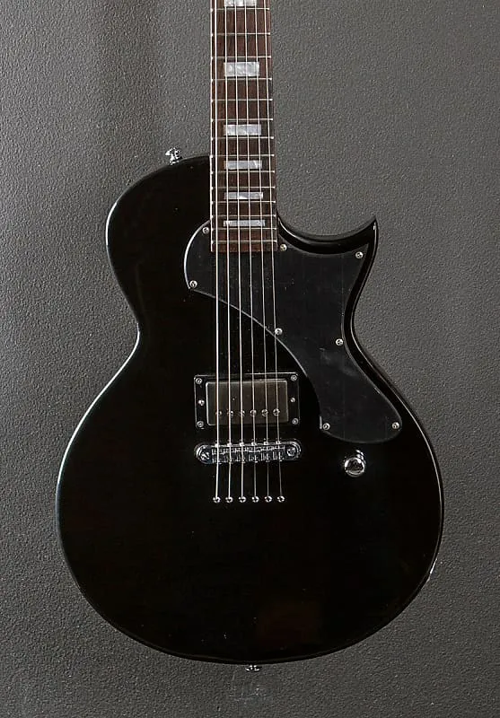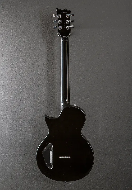 Черный, крылья корпуса из красного дерева, устанавливаемая тонкая шея U-образной формы из трех частей красного дерева, радиус грифa 13,78" из эбена Маккасар с перламутровыми блоковыми вставками и сверхбольшими ладами Лады из нержавеющей стали, длина мензуры 24,75 дюйма, ширина нижнего порожка 1 11/16 дюйма, бридж-пикап Seymour Duncan Custom 14 с коил-тэппингом через кнопку push/pull на главном регуляторе громкости, конструкция String thru body с западающим фиксирующим бриджем TonePros tune-o-matic, блокирующие колки, вес 7,0 фунтов, чехол в комплект не входит