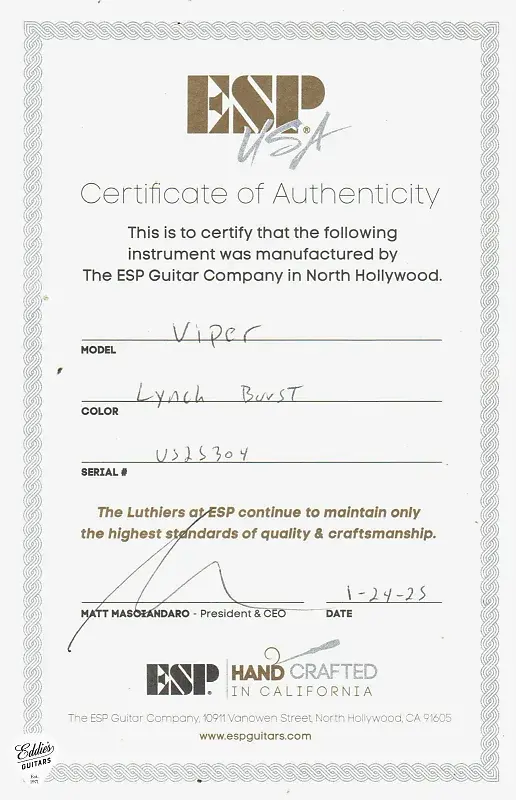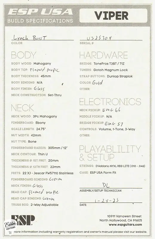ручка для моделей с пассивным звукоснимателем. USA Viper включает качественный жесткий кейс ESP USA, точно соответствующий форме гитары.Другие характеристики включают: