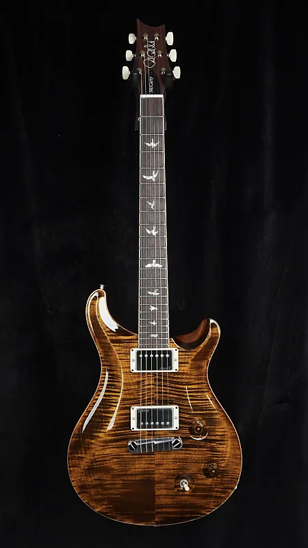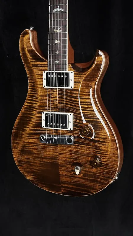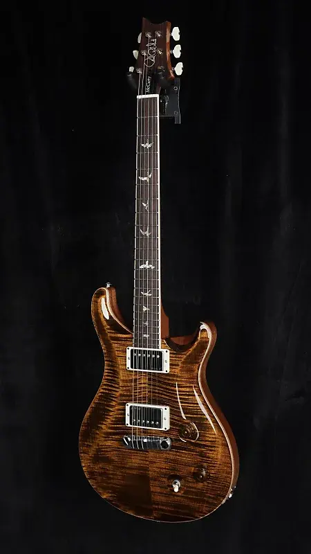 Этот PRS McCarty 2025 года выполнен на заказ в отделке Yellow Tiger. Хотя это стандартная дека, она все же имеет исключительное фигурное дерево.