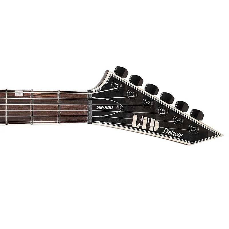 ESP LTD MH-1001NT See Thru Black включает компоненты премиум-класса, такие как замковые колки LTD, замковой мост Tonepros TOM с струной через корпус и активные звукосниматели EMG 81/85 Metalworks. Ее комбинированная 3-составная шейка из клена имеет накладку из эбена маккасар с 24 экстра-джамбо ладами. Корпус из красного дерева увенчан качественным кленовым верхом с эффектной отделкой See Thru Black.