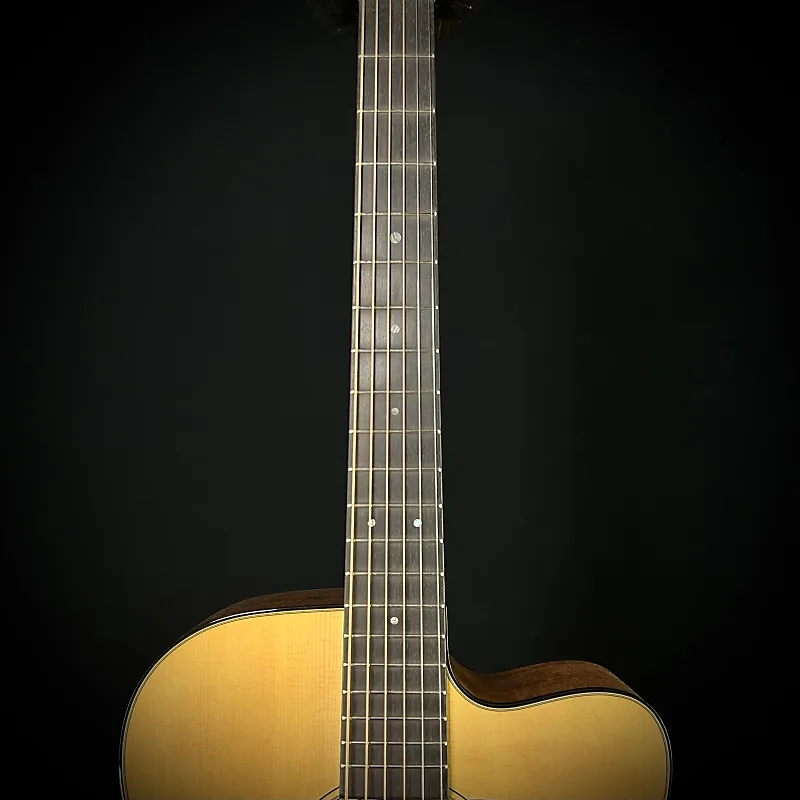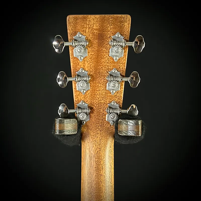 Специальное LTD издание Music Villa Custom Shop Martin 18 модель 0000 с ручным подбором премиальной махагони «Beeswing» для задней части и обечаек, а также верхней декой из швейцарской ели высокого роста (отшлифована до 0,105 дюйма). Включает наши стандартные спецификации MV: мензура 24,9", раскладка деки в стиле Golden Era с смещением вперед, подлинная шейка из махагони 12/4, кость в верхнем порожке шириной 1 3/4" (под углом).