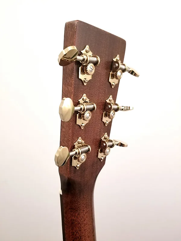 Внешний вид не похож ни на что из нашей стандартной линейки: окантовка из розового дерева Восточной Индии, стильные золотые лады, золотые открытые колки Waverly и уникальный логотип в стиле 1930-х, инкрустированный жемчугом на головке грифа.