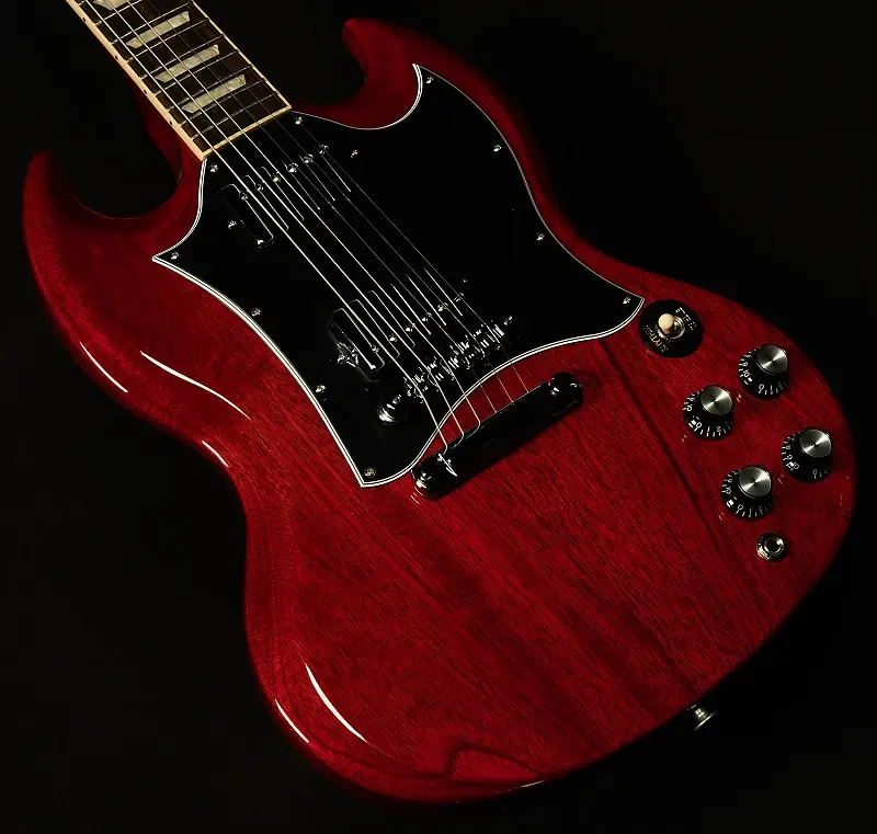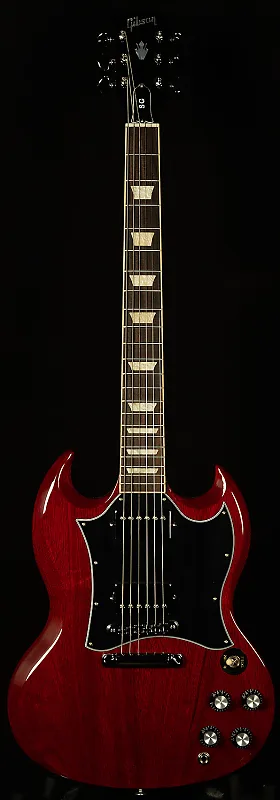 Gibson SG Standard сочетает в себе классический внешний вид и функции, связанные с моделями SG в стиле конца 60-х годов, которые многие искали. Гриф из красного дерева с закругленным профилем, гриф из розового дерева, длинное шиповое соединение грифа на 19-м ладу и прочный корпус из красного дерева обеспечивают основу для пения сустейна. Звукосниматели 490R и 490T Alnico II обеспечивают достаточную мощность для вождения. Черный, 5-слойный, полнолицевой медиатор выделяет этот SG Standard среди других... Поистине универсальная классика.