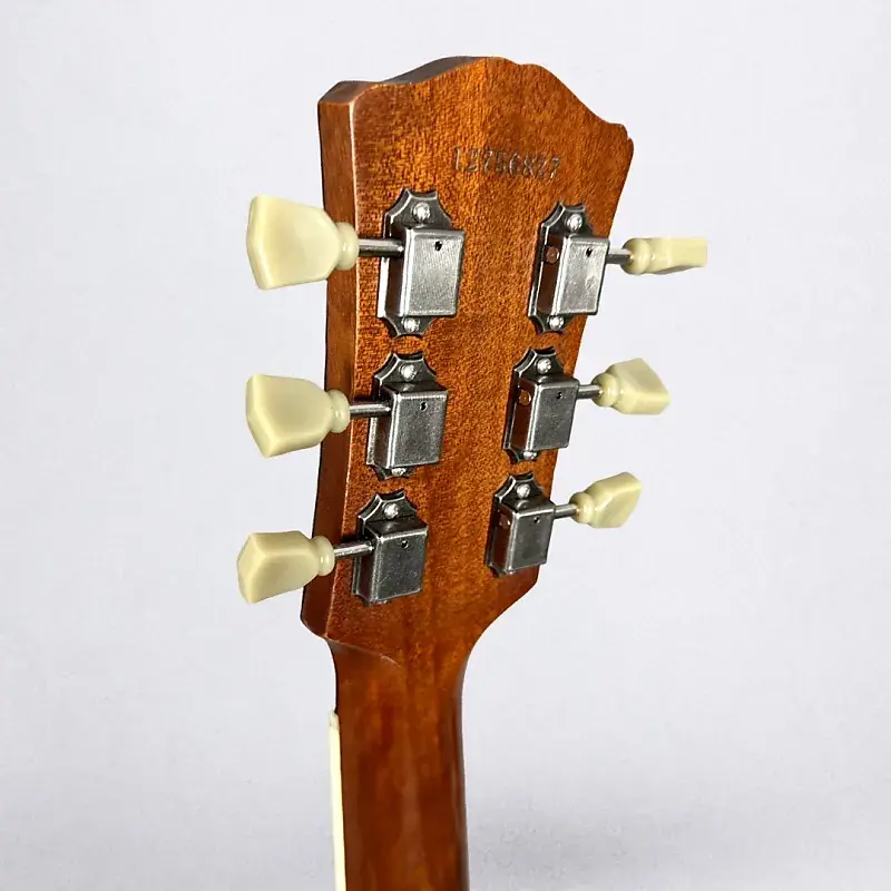 Следуя традициям классической модели, производимой в Каламазу, SB59/v-GB оснащен массивной верхней декой из кленовой коры на корпусе из цельного окуме. Гриф выполнен из монолитного окуме с накладкой из черного дерева и инкрустацией из перламутровой короны - удобным и играбельным, с мягкой V-формой. Верх и накладка грифа окантованы ивороидом. Инструмент имеет тонкий слой антикварного лака в стиле скрипки, который обладает опытной, слегка поношенной патиной и не является просто еще одной обработкой «контролируемого старения», а демонстрирует подлинный винтажный вид.