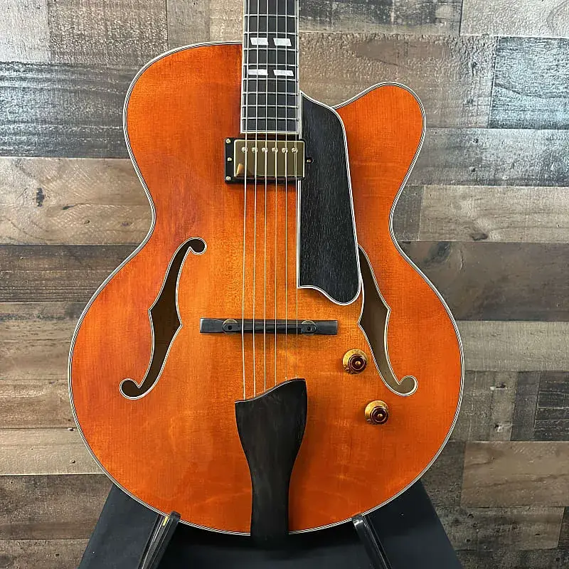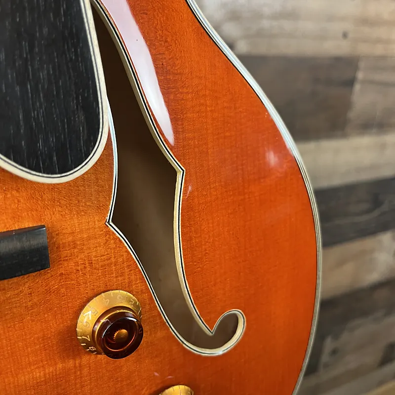 электрогитара Honeyburst Hollowbody с еловым верхом, кленовой задней частью, боками и грифом, грифом из черного дерева и 1 звукоснимателем из черного дерева - Honeyburst