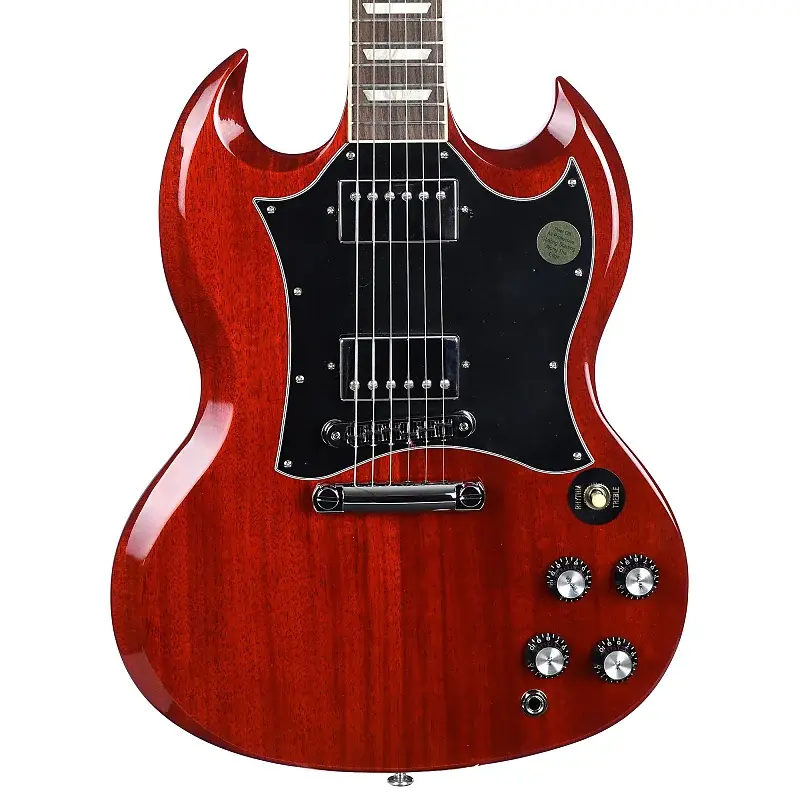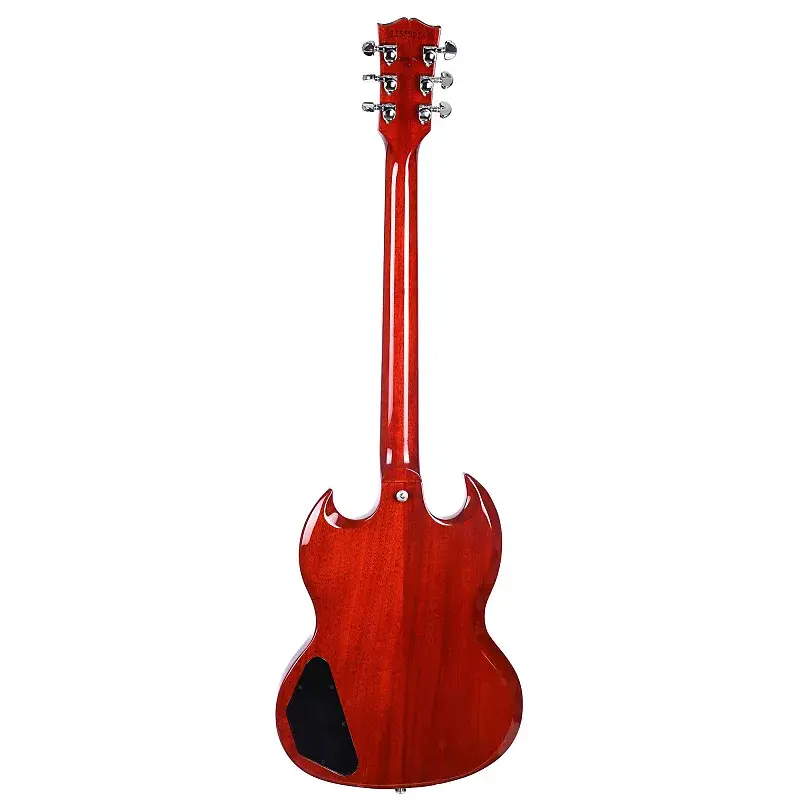 Gibson SG Standard сохраняет классический вид и характеристики моделей SG конца 60-х годов, которые высоко ценятся многими музыкантами. Шея из махагони с округлым профилем, окантованная грифовая доска из розового дерева, соединение шеи с корпусом на 19-м ладу с длинным шипом и цельный корпус из махагони обеспечивают основу для продолжительного звучания. Звукосниматели 490R и 490T Alnico II дают мощность для игры. Черная, пятислойная, полноразмерная накладка выделяет эту модель SG Standard среди других... поистине универсальная классика.