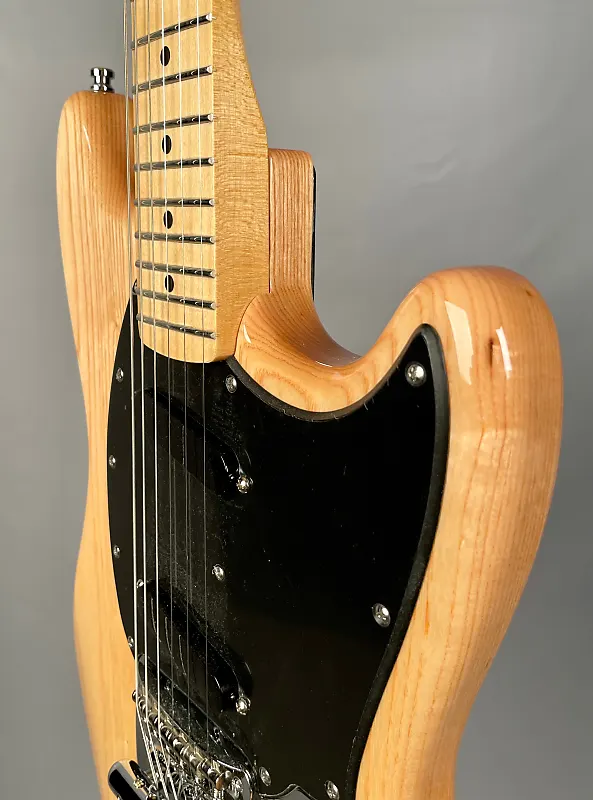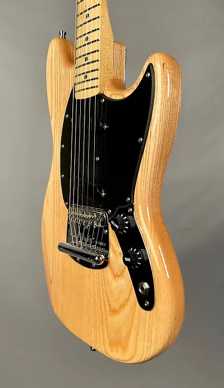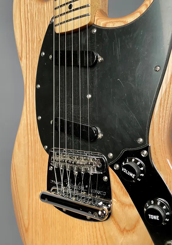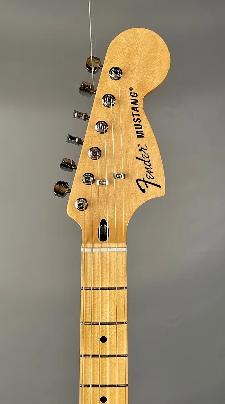 Корпус из ясеня с камерой Гриф из клена с современным профилем 'C' Анастазовая накладка грифa из клена с радиусом 9,5" Пикапы Mustang однотипные винтажного стиля Главный регулятор громкости Ротационный переключатель звукоснимателей, замаскированный под регулятор тембра Ширина порожка 1,65" Длина масштаба 24" В комплекте мягкий чехол