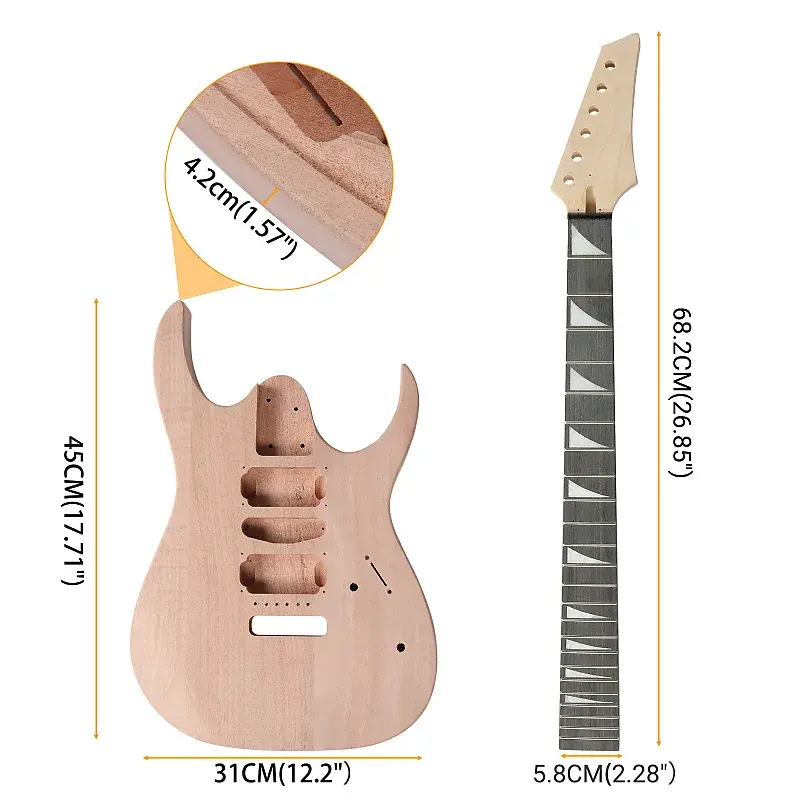 2. Комплект DIY для электрогитары 170 стиля с 6 струнами, корпус из цельного красного дерева и гриф из клена