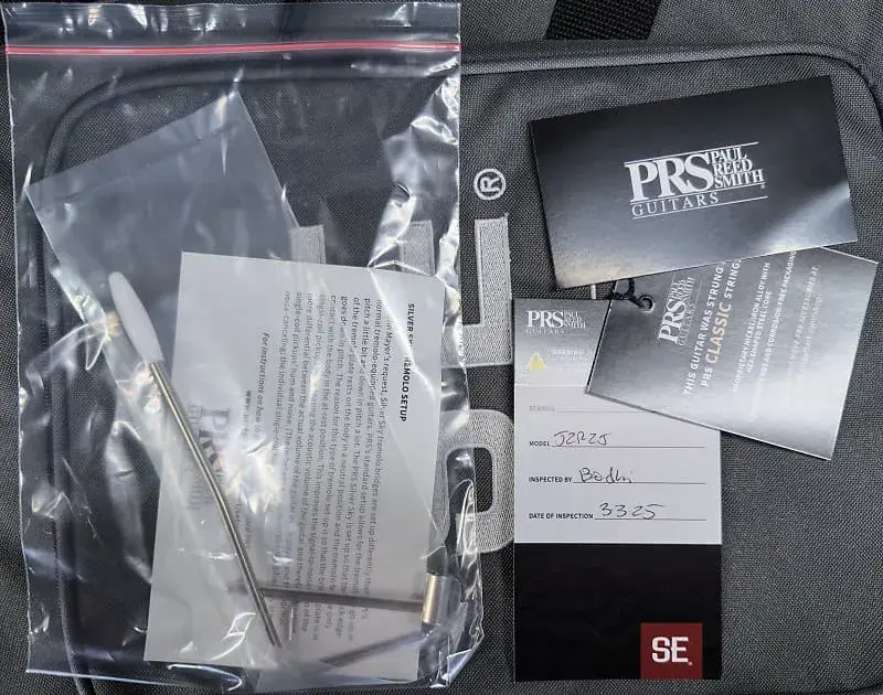 PRS SE Silver Sky имеет корпус из тополя, крепящийся на болтах гриф из клена и грифовую накладку из розового дерева с фирменной инкрустацией птицами от PRS. Гриф с 22 ладов и длиной мензуры 25,5” оснащен оригинальной резьбой 635JM и радиусом накладки 8,5”, что делает игру на PRS SE Silver Sky привычной и удобной. Подключите ее, и три сингл-катушечных звукоснимателя 635JM «S» будут звучать мощно и выразительно. Гитара оснащена тремоло с двумя точками крепления из стали, костью синтетического происхождения и колками винтажного стиля. Другие особенности дизайна включают перевернутую форму головки грифа PRS Silver Sky и двунаправленный анкерный стержень PRS (доступный с передней части головки грифа для удобства использования). Поставляется со струнами PRS Classic 10-46 и чехлом для гитары.