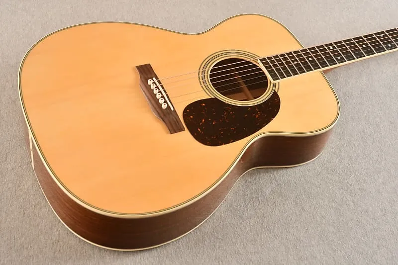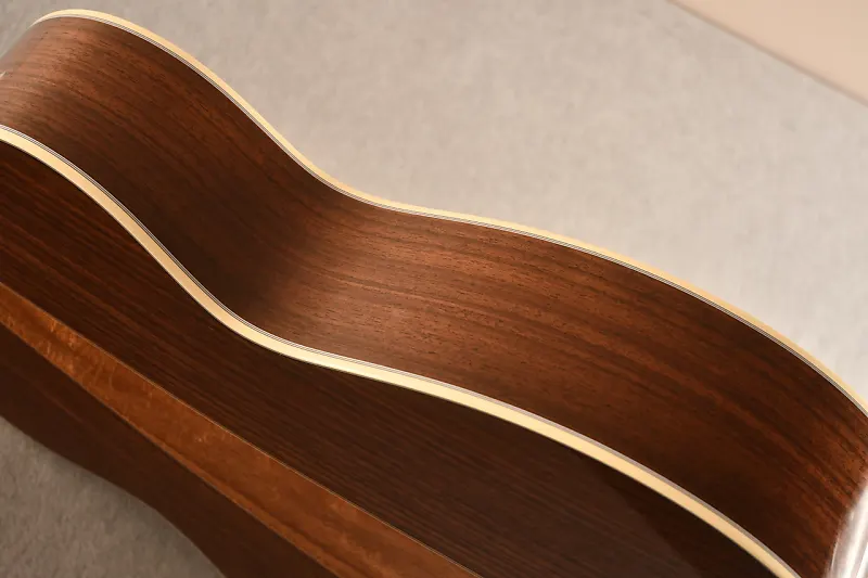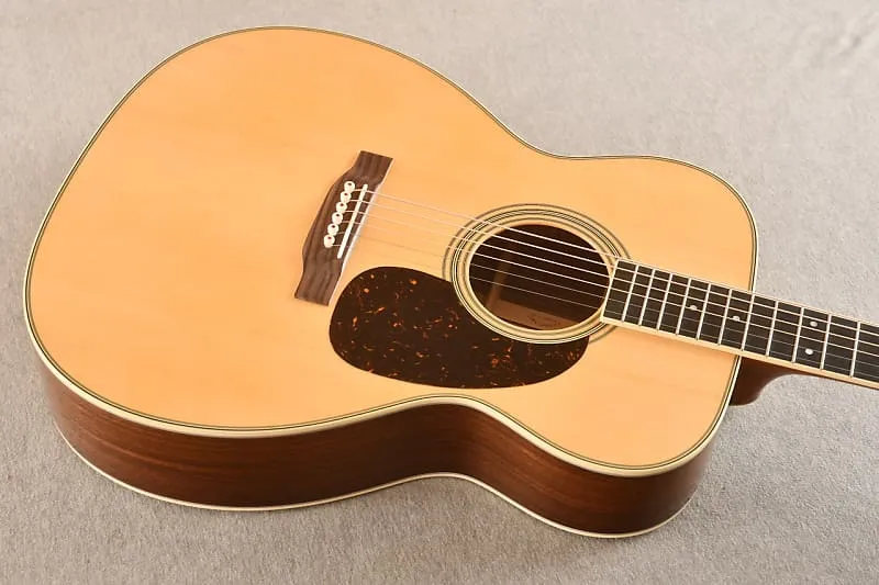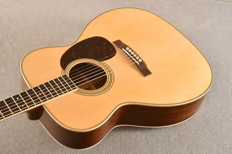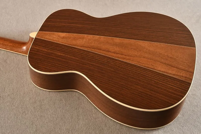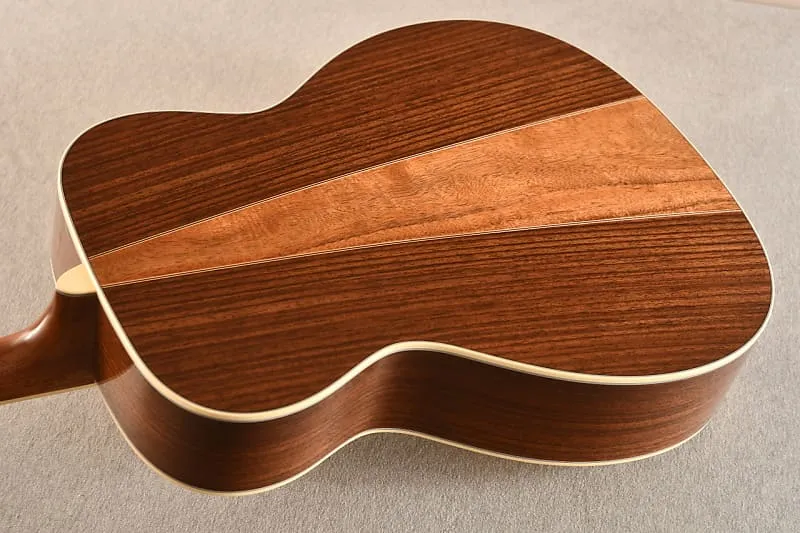 В октябре 2024 года, находясь на заводе Martin, я лично выбирал древесину для серии моделей Custom Shop M-36! Эта гитара имеет верх из ели Адирондак и клиновидные стороны из koa! Я выбирал самые жесткие верха, которые смог найти. Ель Адирондак делает гитару очень отзывчивой и громкой при сильной игре. Думаю, корпус 0000 помогает избежать некоторой мутности, которую мы наблюдаем в больших гулких розовых Дредноутах.