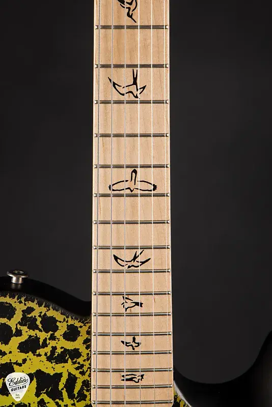 Сатиновое нитро-покрытие позволяет гитаре «дышать», усиливая ее органическое звучание и обеспечивая гладкое и приятное ощущение в руках. Гриф из клена, выполненный с использованием scarf-соединения для прочности и стабильности, имеет фирменную форму Pattern 53 - профиль грифа, воплощающий комфорт и точность. Его размеры выполнены мастерски: глубина составляет семь-восьмых дюйма на первом ладу и чуть меньше одного дюйма на двенадцатом, достигая идеального сочетания объема и скорости. Лады из клена с радиусом 10 дюймов, украшенные культовыми инкрустациями в виде птиц PRS, приглашают к легкому выражению на всех 22 ладах при длине деки 25,5 дюйма.