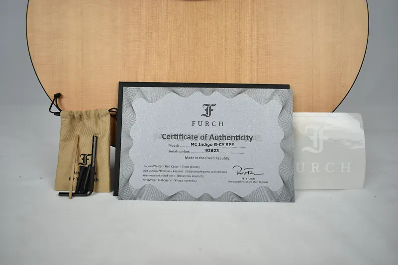 Модель Furch Indigo Master’s Choice - это высококачественный инструмент с формой Grand Auditorium. Гитара использует акустические свойства цельной верхней деки из западной красной лиственницы. Корпус и обечайки выполнены из многослойного махагони. Спинка арочной формы и не требует распорок, что положительно сказывается на акустических качествах инструмента. Комбинация тонкозвуковых пород, минималистичное оформление и финиш Furch Open-Pore придают гитаре Furch Indigo Master’s Choice теплый натуральный вид и очень сильное, громкое и динамичное звучание.