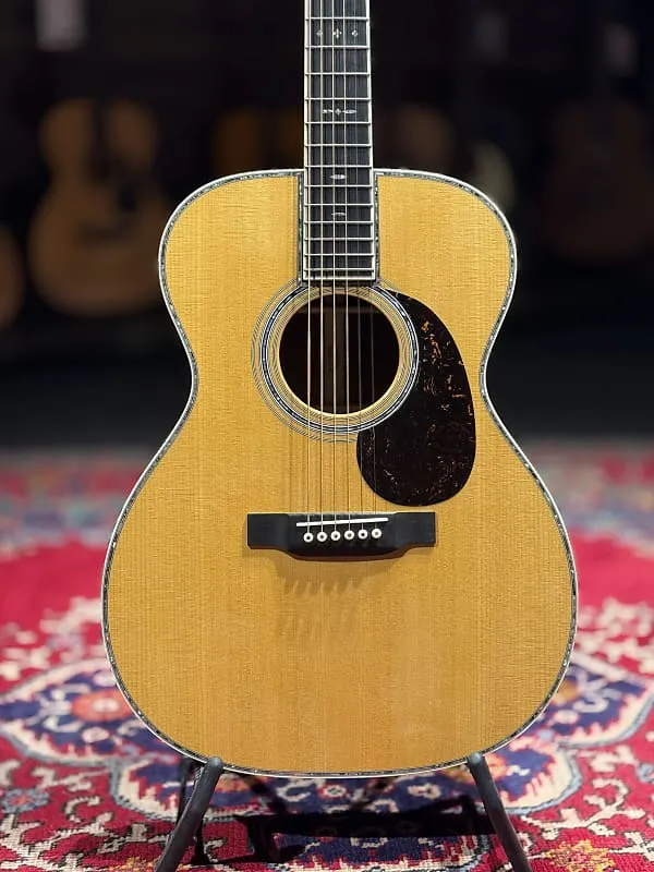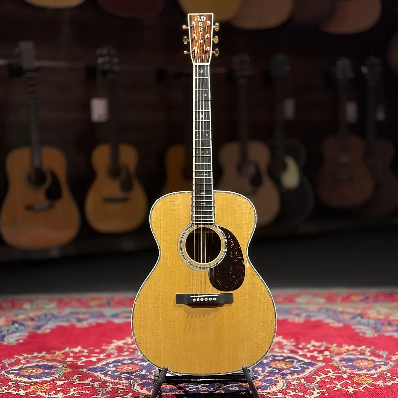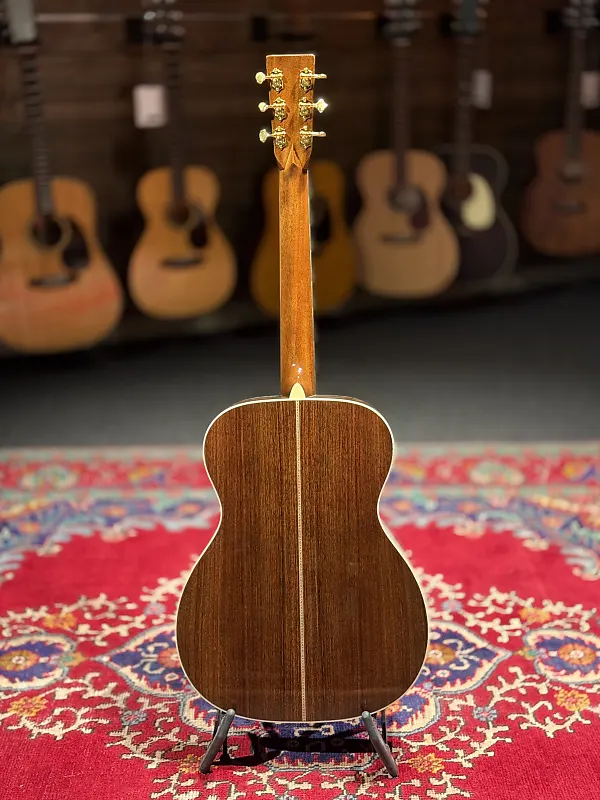 Изысканно украшенная модель 000 с задней и боковыми панелями из индийского палисандра, верхняя дека из ели с распорками X и соединением грифa с корпусом в виде шипа. Открытые колки, антикварная окантовка, глянцевое покрытие и инкрустация из абалона на верхней деке создают изысканный стиль с насыщенным сложным звучанием. Короткая мензура и узкий гриф с низким овалом и плавным сужением.