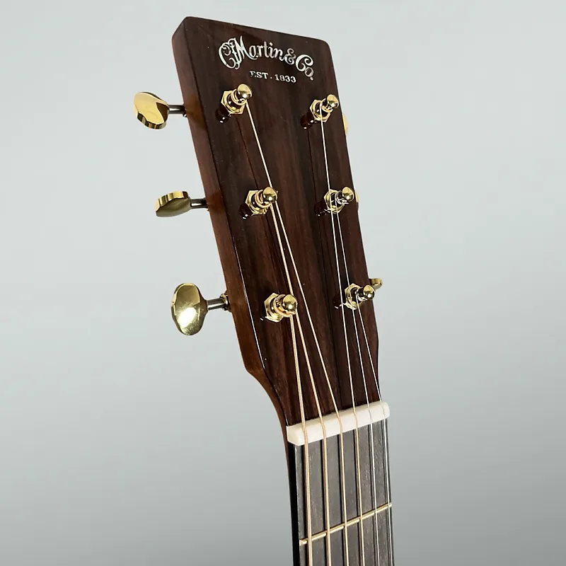 Эстетические детали, такие как оправа из индийского палисандра, инкрустации из перламутра Diamonds and Squares и золотые колки с открытым механизмом, превращают 000-18 Modern Deluxe в визуальный шедевр. Форма грифа Vintage Deluxe обеспечивает идеальное сочетание комфорта и удобства игры, что делает гитару подходящей как для игры пальцами, так и для игры медиатором. Будь то на сцене, в студии или дома, эта гитара обеспечивает премиальный опыт игры в каждом аспекте.