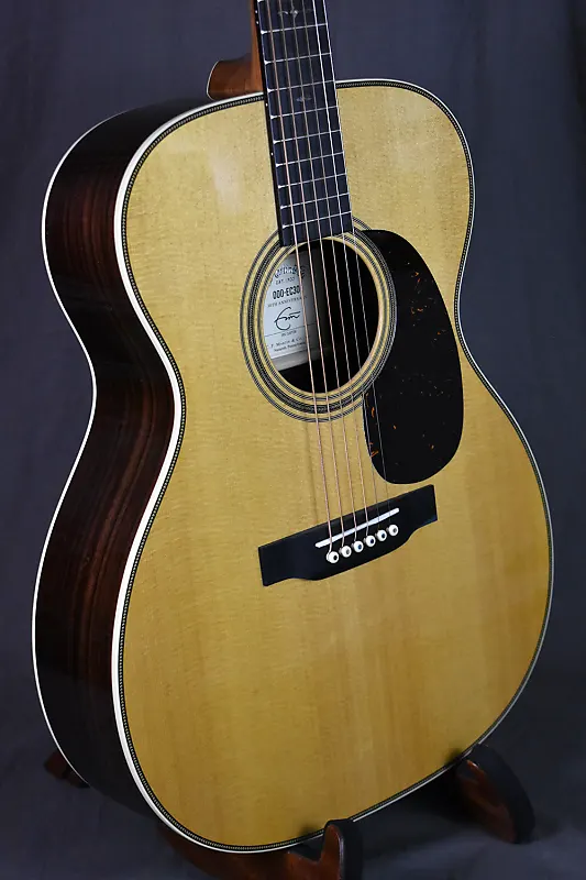 Отмечая 30-летие модели Eric Clapton, ограниченная серия 000-EC 30th Anniversary является утонченной данью уважения как артисту, так и гитаре, с которой все началось. С массивной верхней декой из ели и спиной и обечайкой из индийского палисандра, корпус 000 обеспечивает тепло, чистоту и баланс с богатым обертонами. Длина мензуры 24,9" и компактный корпус делают ее очень комфортной в руках, а короткая мензура обеспечивает более мягкое срабатывание, тогда как ОМС с удлиненной мензурой иногда звучат слишком резко и резко. На стенде звук обладает приятной мягкостью, которая выделяет модель 000-EC среди других Martin.