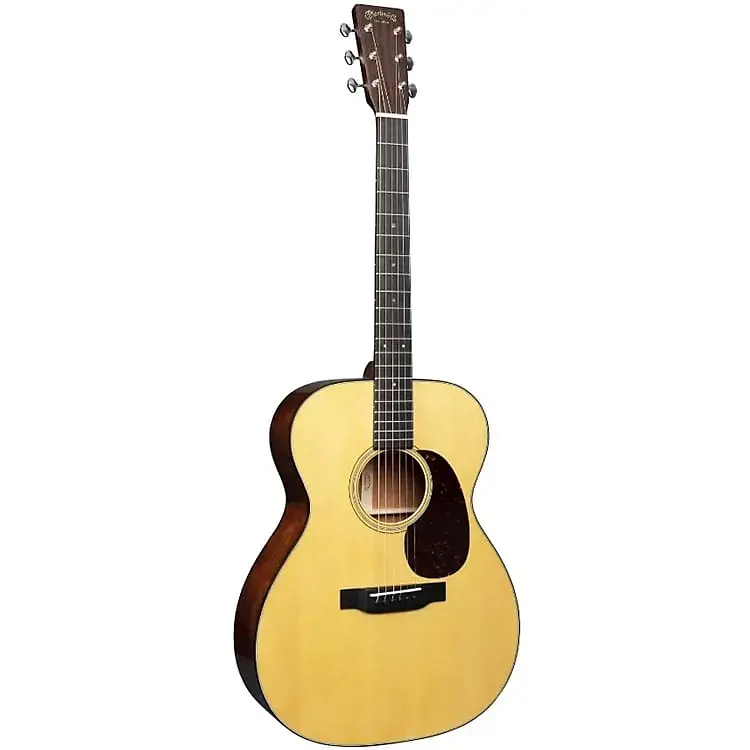 Имея отчетливый винтажный дизайн и обновленный аналогично модели D-18 несколько лет назад, переработанный 000-18 предлагает многие характеристики, присущие нашим гитарам довоенной эпохи. Модель 000-18 с красивой верхней дека из выдержанной ели сочетается с настоящей задней и боковыми частями из махагони. Корпус окантован черной окантовкой и дополнен полированным покрытием. Модель с короткой мензурой 24,9” имеет гриф с модифицированным низким овальным профилем и сужением типа Performing Artist, с шириной у порожка 1-3/4” и расстоянием между струнами 2-5/32” для удобства игры. Никелевые колки с открытым механизмом и кнопками «butterbean» установлены на накладке из розового дерева, где размещен большой логотип Martin в старом стиле.