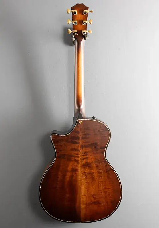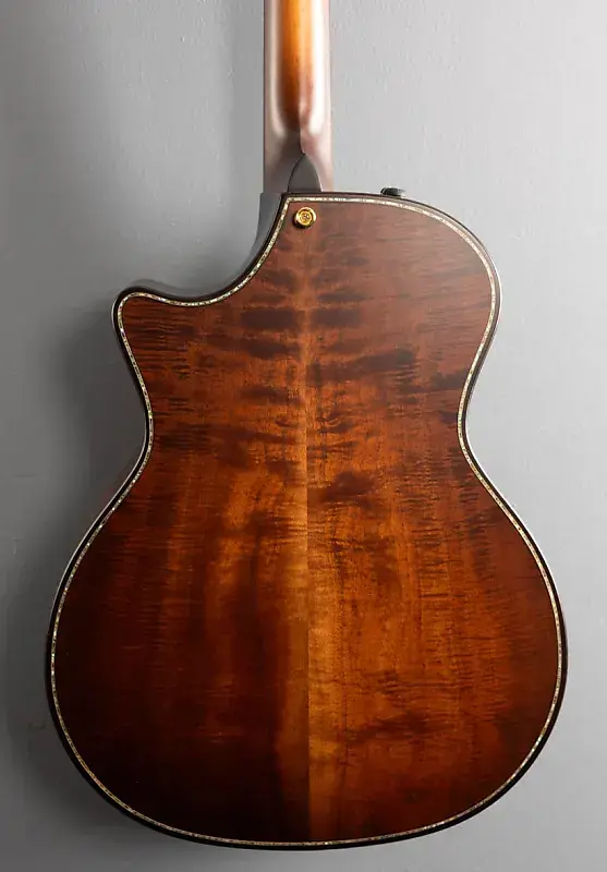 Отделка Silent Satin Natural с задней и боковыми деками в цвете Kona Burst, форма корпуса Grand Auditorium с скошенным вырезом и подлокотником, топ из термически обработанной ели Ситка, одна розетка из коки/волокна/пауа, распорка V-Class с Relief Rout, задняя и боковые дека из гавайского коки, Вест