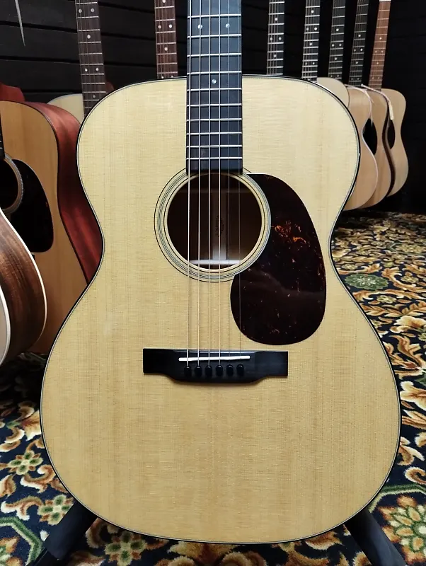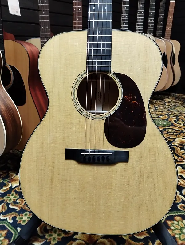 Обладая ярко выраженным винтажным дизайном и обновленный, как модель D-18 несколько лет назад, переработанный 000-18 предлагает многие характеристики, присущие нашим гитарам довоенной эпохи. 000-18 с красивой потертой верхней декой из ели сочетает в себе настоящие макассарские заднюю и боковые деки. Корпус украшен черной окантовкой и дополнен полированной отделкой. Гриф короткой модели с длиной мензуры 24,9 дюйма имеет модифицированный низкий овал с профилем Performing Artist, ширина у верхнего порожка составляет 1-3/4 дюйма, а ширина межструнного расстояния - 2-5/32 дюйма для удобства игры.