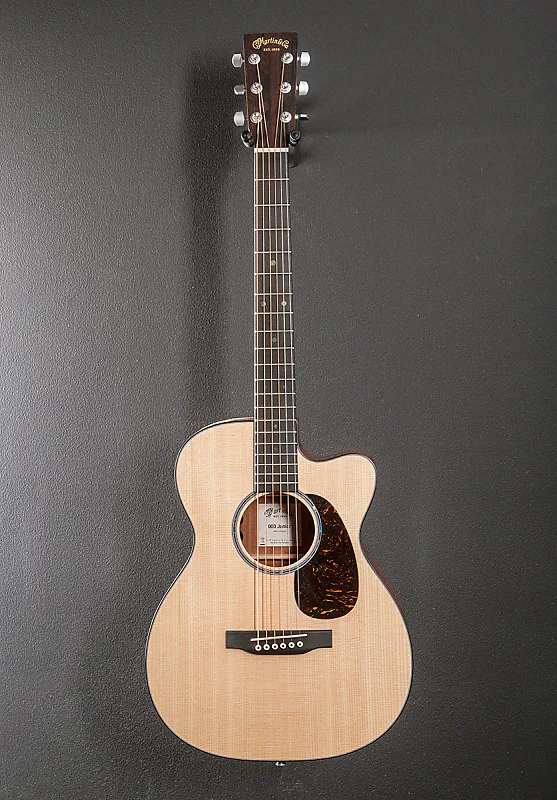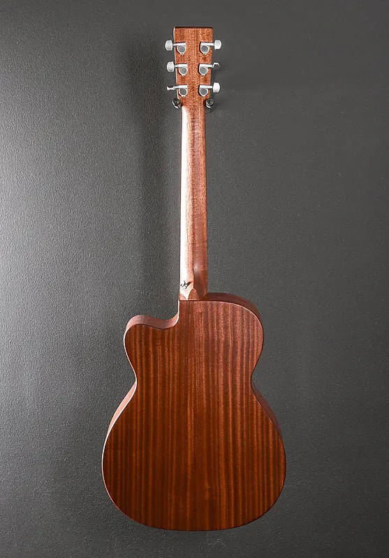 Естественная сатиновая отделка верха и корпуса, форма корпуса 000 Junior с вырезом на 14-м ладу, верхняя дека из ели, одинарная кольцевая розетка под искусственный абалон, резонансная распорка X с выемкой, задняя дека и обечайки из сапеле, черная окантовка с многоцветной инкрустацией на верхней деке, гриф Performing Artist из отборной древесины с высокопроизводительным конусным профилем, накладка на гриф FSC сертифицированная Richlite с позицонными маркерами под искусственный абалон (28 позиций), мензура 24,9 дюйма, ширина у порожка 1 3/4 дюйма, литые/закрытые колки, система звукоснимателей Martin E1 и чехол из мягкого материала